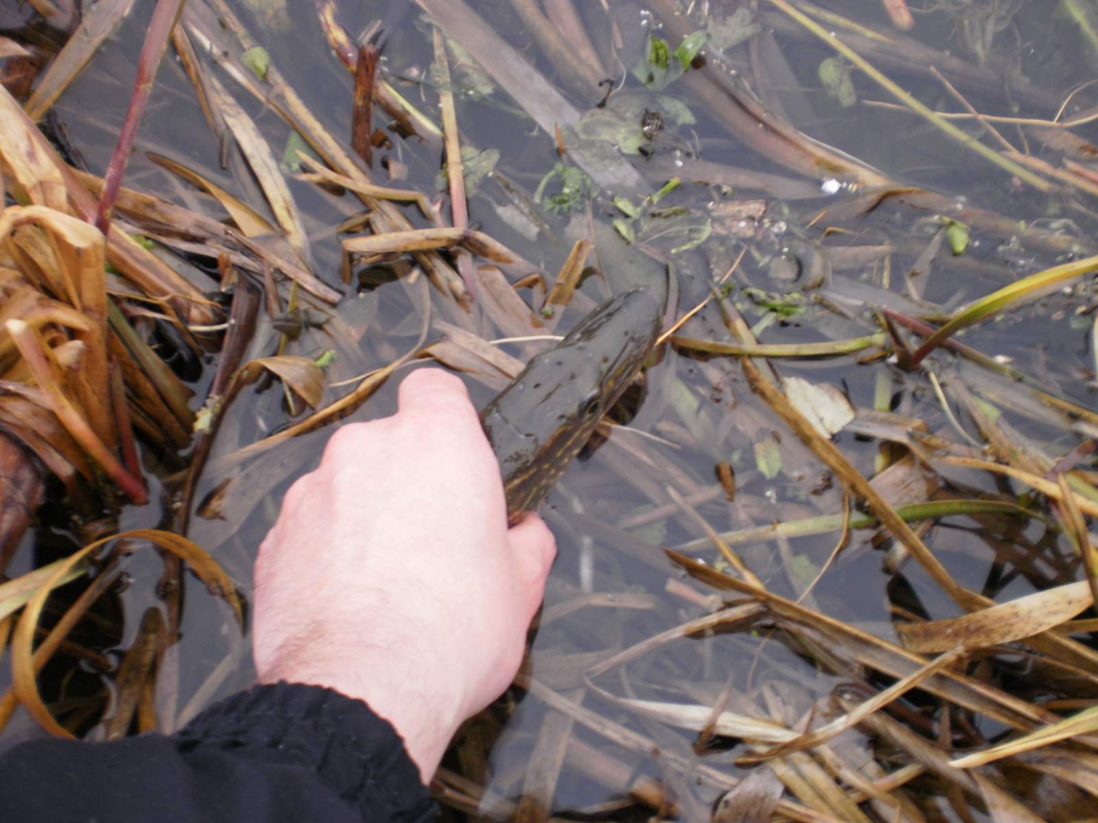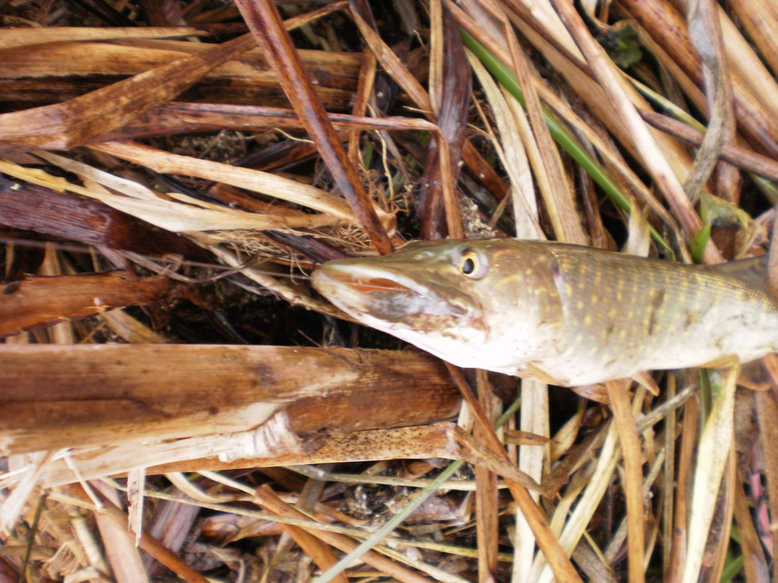 Про сьогоднішню риболовлю,Вибір- річка Луга в Хрипаличах,з забігом на "апендицит".Розпочав з "апендициту",клювання з першого закиду,або за щось зачепив-забув затягнути фрикціон,вже в десяте так напевно.Потім переходи і зміна приманок ,проводок-0.Переходжу на річку,зустрів "чорного археолога"все допитувався за улов,певно він ще і браконьєр.Обкідав ямку що прошлий раз порадувала але -0,вирішую пройтись вниз за течією,по цьому березі ще не був,йшов бобровими стежками,шкода що бобри низькі,весь очерет мусив розгрібати.Вийшов на іншу ямку,з другого закиду клювання,недовга боротьба.щучка пів кіля PC100542.jpg