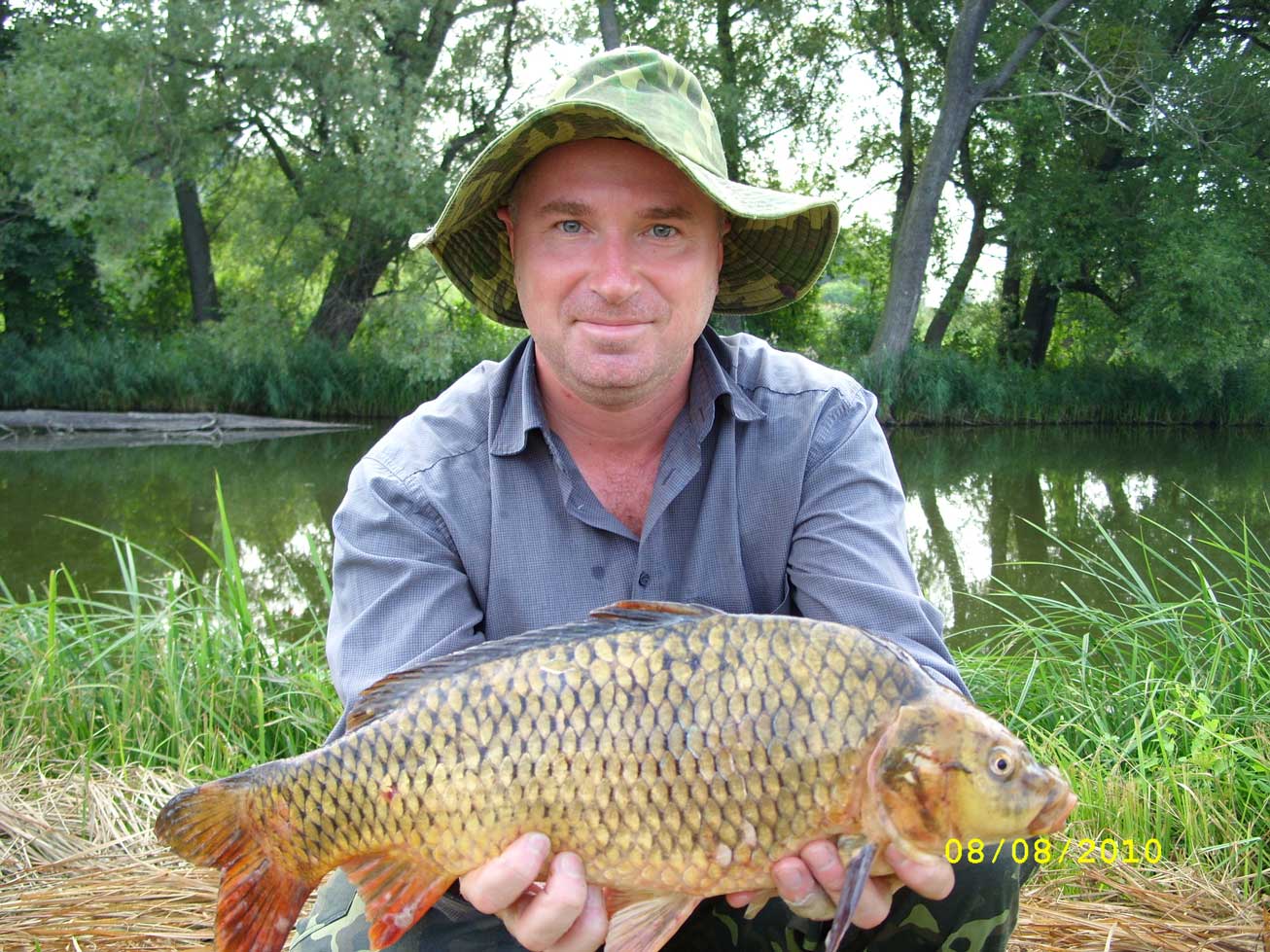 Карп ... Сама загадкова риба на цій водоймі. Існування на довгій, вузькій водоймі внесло корективи у його поведінку. Раніше, років 5 назад, місцеві казали, що на каналі карпа немає. Поки я його не почав ловити кожного дня по 4-6 кг на варену кукурузу, причому, менше 1 кг практично не попадались, в основному - від 1 до 2 кг. Ніхто тоді не знав, що на таке можна ловити, всі тягали на черв"ячка карасиків і дрібних карпиків. Так от, кожного року приходиться розгадувати загадки кльову цієї риби. То він активно бере на кукурузку, то на манку, то на зелений горошок, то на варений жовтий горох, то на кукурузну мастирку (мамалигу), то на черв"яка, а то і ні на що не бере неділями. Місця його лову також треба знати, бере не кругом, а близько своїх стоянок, на шляху ходу від стоянки до місця, де кормиться. Іде завжди під берегом за 1-3 м від нього. Там і треба ловити. На середині, на фарватері попадається рідко. Порою дивуєшся: на фарватері глибина 2,5 метри, а він бере, де води трохи вище колін. Місця стоянок - повалені дерева, кущі, що ростуть над водою, островки латаття. Час кльову строго визначений - з 6-00 до 8-00, рідко, в пасмурну погоду клює і до 10. Ввечері бере, як починає темніти, вночі в 1-00 і в 3-00 можливі покльовки (кілька разів нас пустили на ніч сторожа), причому, самого крупняка.