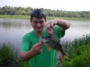 Сегодня утром, Количевка (10 км от Черниова по Киевской трассе и на право, место ловли на карте отмечено красным). Я и lisiycat поехали проверить старые места, на которых уже очень давно не был ни я, ни он. Десна нас встретила легким боковым ветерком и кучей отдыхающих. Чистой ловли у нас получилось часа 2-3, по щуке - полный голяк, но зато удалось весьма азартно половить окуня, самый крупный из которых был грамм 400-500, его фото ниже. Как всегда не обошлось без случая браконьерства, после очередного заброса, зацепился вертухой за сеть, слава Богу блесну спас. Через пару минут, услышав мои матюки, подъехал мужик на лодке (один из отдыхающих) и выбрал сеть, к сожалению нам не удалось ее порезать, просто не успели. Ну а лекции о вреде браконьерства таким людям, если их можно так назвать, читать не имеет смысла. По окуню, Количевке зачет! Приманка дня Aglia Long