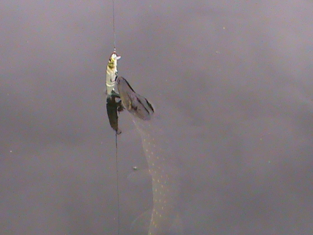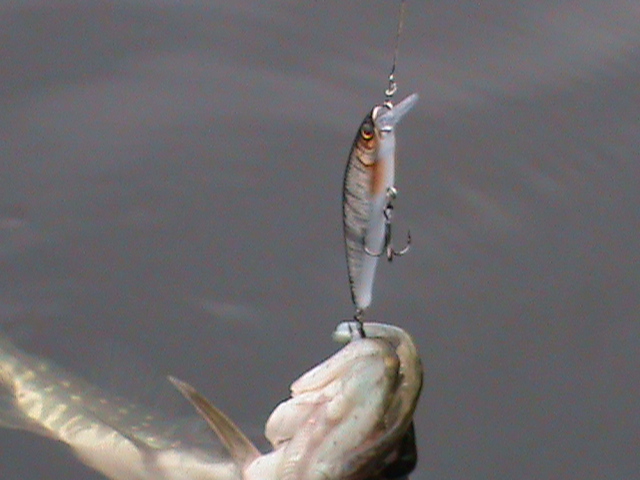 Цель рыбалки щука,решил начать с воблеров минноу,ставлю Smith - Jib он себя ни чем особым не проявил,шнурок чуть больше самого воблера.Слышу, есть и у напарника хайка под двушку.