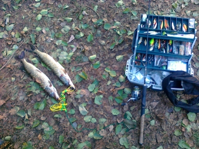 После успешного празднования дня рождения супруги в субботу утром меня разбудил телефонный звонок. Чертыхаясь, беру трубку. Из трубки доносится голос моего друга о сегодняшней совместной рыбалке и через 10 минут он с напарником будет у меня, а я чтобы был собран. Кладу телефон, переворачиваюсь на другой бок и засыпаю, подумав, приснится же такое. Через десять минут по шуму в квартире я понимаю, что это не сон. Друзья обещают меня четвертовать потому, что я до сих пор не одет, тем более вчера о рыбалке договаривались (не помню такого). Пробую возразить, что троллинг не мой стиль, на что получаю ответ, что раз я ловлю рыбу, то должен уметь все, тем более что снасти уже в машине и мне нужно только потеплее одеться и не забыть водительское удостоверение. Усадив меня за руль автомобиля друзья начали еще в дороге опохмеляться. На базу УООР прибыли без происшествий, устанавливаем на МКМку 15 Мерк и вперед. Из снастей два параболика с тестом 10-30г и десяток карасей от Джексона. Выбор не велик, но и на том спасибо. Усадив меня за румпель и дав собранный спин друзья продолжили возлияния. Как ни странно, в пятидесяти метрах от базы я почувствовал вис (параболик + леска) и первая щучка чуть больше килограмма была изъята из воды. За первого сбитого друзья опрокинули по три рюмки. Продолжаю ловлю. Прогуливаемся "на столах" (или базаре) В течение часа ноль. На одной из бровок с четырехметрового выхода на 1,5 м. поклевка. Без возни беру щучку на 2.5 кг. Дальнейшая рыбалка уcпехов не принесла, а к полудню друзей, вкинувших кило на грудь начало клонить на сон, пора собираться домой. 15 сильный движок (4 тактник) реально напрягает, если его снимать одному и укладывать в машину, а затем усаживать друзей, которые енергично "варят воду". Спонтанная рыбалка понравилась. Фотик на воду не брал, а пока развез друганов по домам и вернулся домой, щук привели в нефотогеничный вид. Одна 1.2 кг, вторая 2.5.