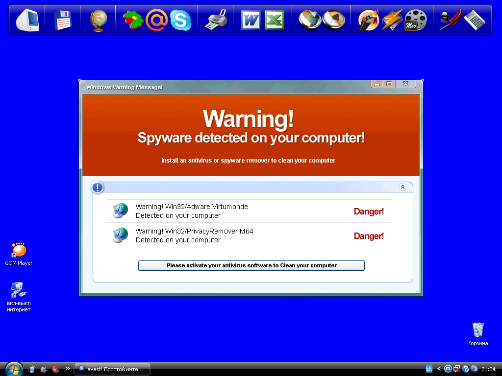 Заменяет рабочий стол на вот такую картинку. NOD, Avast, Spybot, Ad-Aware, Agnitum Outpost - беспомощны. Зачем они тогда нужны ???