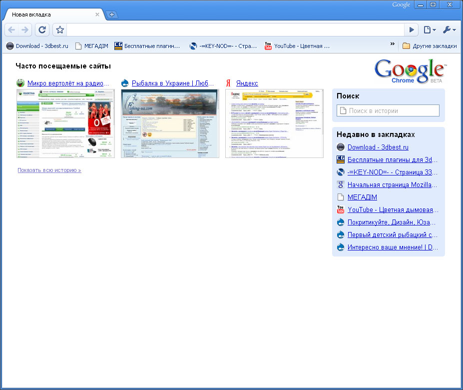 Пропоную усім дослідникам провести БЕТА тестування нового инет браузеру Google Chrome: http://www.google.com/chrome/ Особисто мені цей продукт, від улюбленного пошуковика, здався дійсно цікавим. Але є деякі проблеми с роботою Java Script, вважаю цей недолік буде враховано програмістами і Google Chrome буде конкурентно спроможним! Відносно до інтерфейсу, то Google Chrome мене влаштовує, нічього зайвого! PS. вразила стартова сторінка де відображені мініатюри сайтів які останнім часом переглядав.