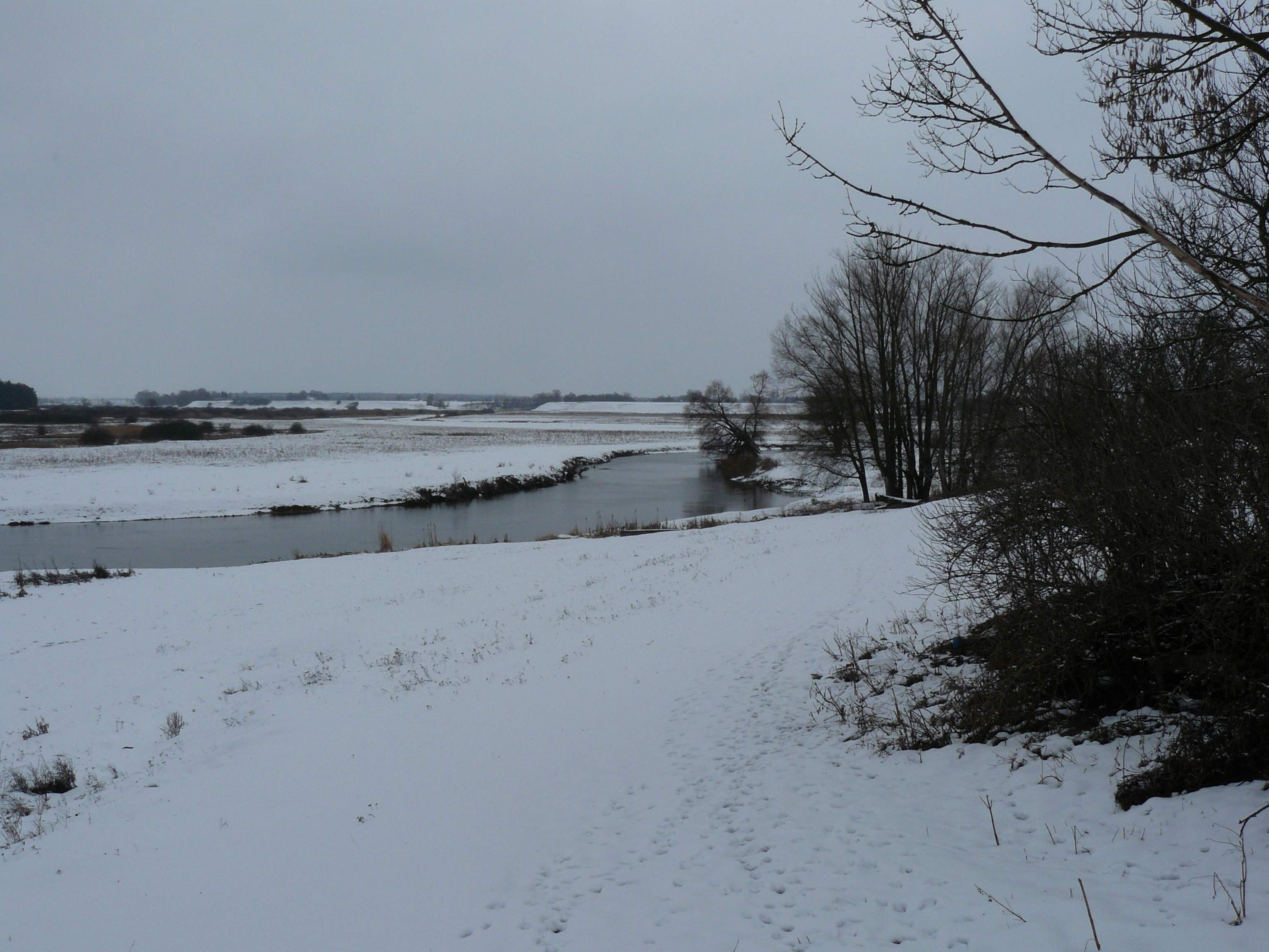 Один із краєвидів у с. Більче подаю на фото – зима майже у повному розгарі. На іншому фото – помітно лопатий сніг на фоні місцевого парку дерев уздовж берегу Стиря.