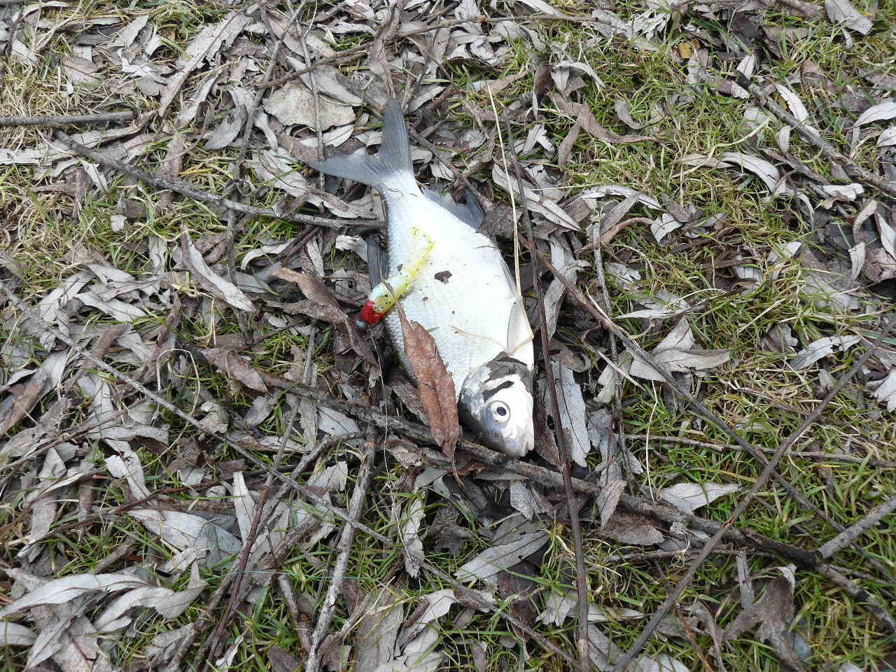 На річці розійшлися. Тривалий період не було клювання, а вже в районі обіду отримую перше клювання. Знову виручає Owner C'ultiva Rip'N Minnow 65 і це при тому, що іншим вобам приділив сьогодні достатньо уваги. Гарний вихід, дрібний смик із паузою і вихід. Забираю – шансів на вижиття у неї не має.