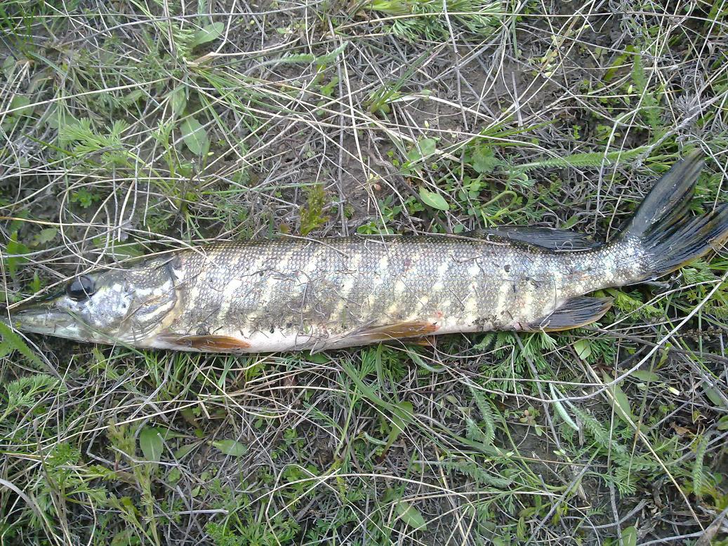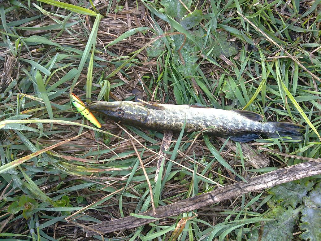 Всем доброго дня! Сегодня утро оказалось свободным и решил рвануть проверить найденные недавно перспективные места и кое-что получилось.Маленькая щучка отозвалась сразу на первой проводке на твич и была отпущена звать родичей постарше.Через часок клюнула родственница (на 1,5 кг) тоже на твич,но пауза сек.5,на уже проверенный воблер салмо стинг. На рыбалочке был с 7.30 до10.30 на дренажном канале на левом берегу под с.Кулеши.