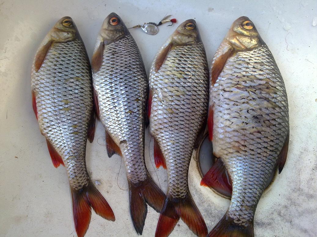 На майские праздники отдыхали на даче в районе Чайки и удалось половить рыбку по заливам Днепродзержинского водохр..На удочку тишина карасик молчит, а на спин на вертушку Мепс 00 клевала краснопера.Самая крупная взяла на салмо стинг кислота (удар,подсечка,есть задний тройник во рту-все по-честному),после этого остальное на мепсика.Очень приятно ловить мирную рыбу на спин.Фото на воде слелать не получилось,т.к мобильник остался на даче так что извиняйте.