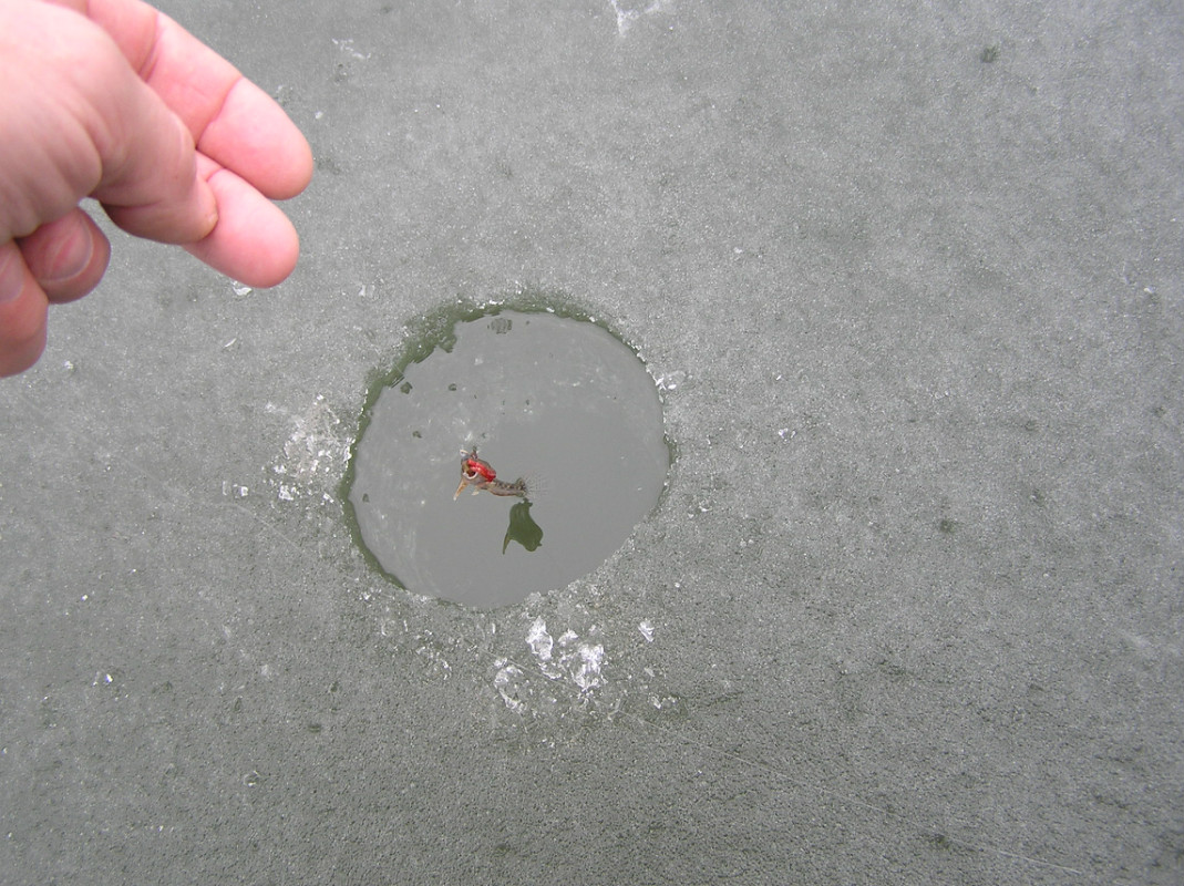 Вчера пытался рыбачить на Куриловском котловане. Лёд как для меня уже стрёмный, в разных местах толщина разная, много мест где с одного удара пешни он пробивается, поэтому в "рыбное" место не пошёл. Клёв совсем не радовал, пару окуней с ладошку и три таранины с другую ладошку. При таком раскладе засиживаться совсем не хотелось. Поймал "огромного" бубырца" - фото пойдёт в антитрофеи. P2160459.JPG