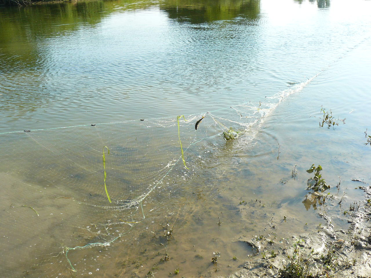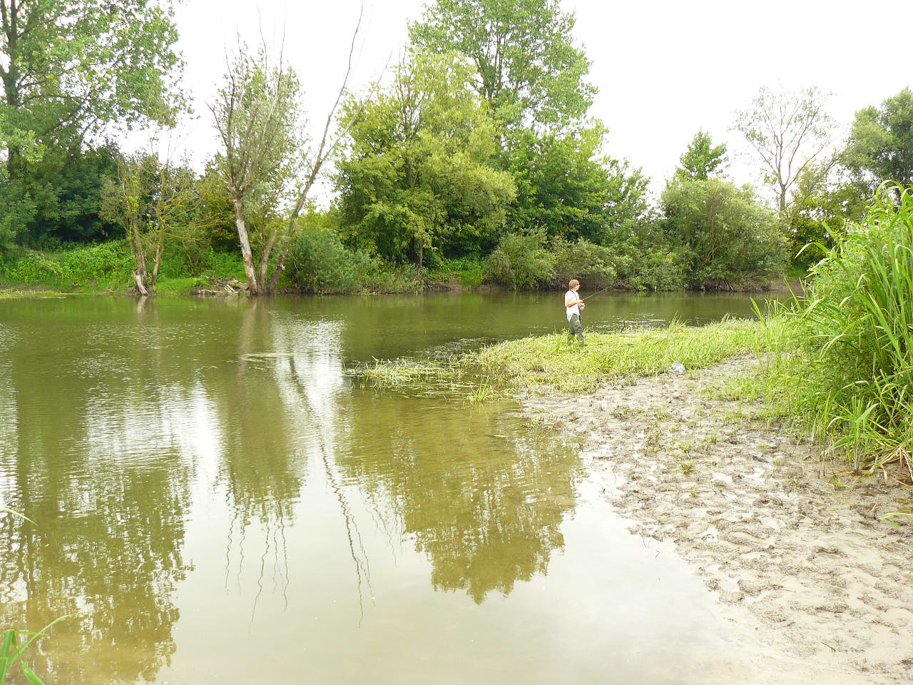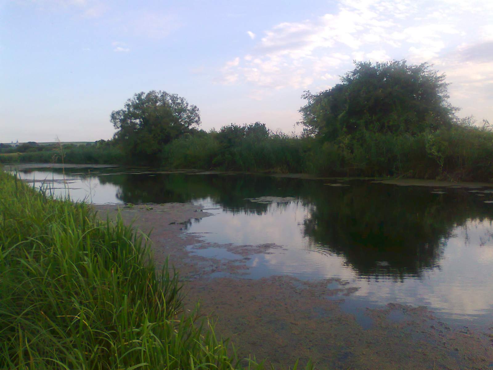 Це виявилось не просто, тому що річка втих місцях має пологі береги повністю заросші якимись кущами, осокою і височенним комишем. Знайшовши більш-менш нормальне місце ми почали ловити. Але кльов був дуже слабеньким. На протилежному березі приїхала машина, і хлопці сказали, що тут пару тижнів назад пройшлись електровудками, після того нічого й не ловиться нормального. Це була остання крапля в нашій чаші терпіння. Малого того, що тут невідомо чи буде клювати сом вночі, так ще й отака халепа. Ми остаточно прийняли рішення повернутись в рідні краї і ловити сомів на ямах.