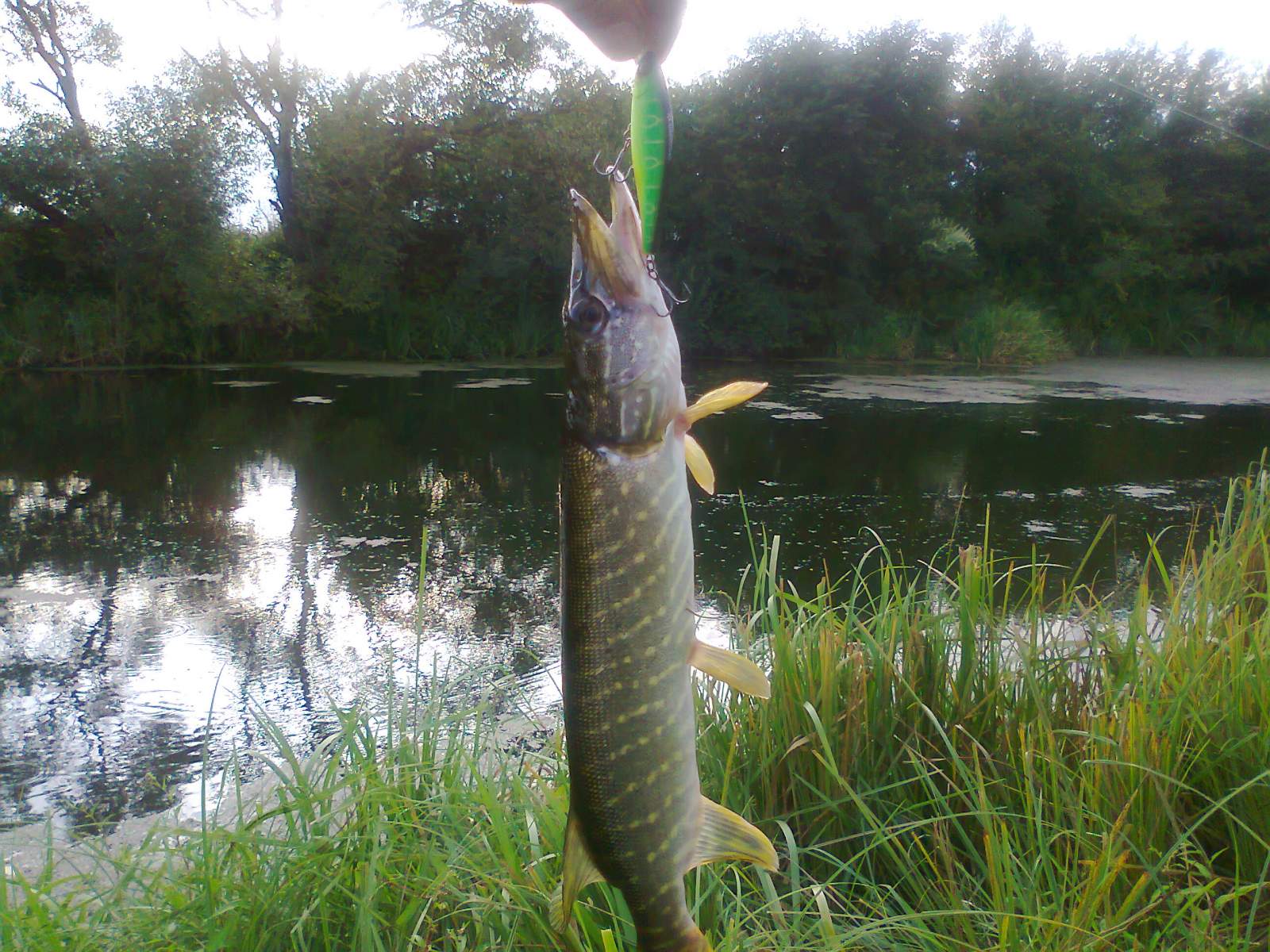 Мої вітаня шановні рибалки . Сьогодні вечерком після роботи вискочили на одну із стариць р.Стир ,майжи вся поверхня вкрита травою , але є вікна в яких можна кидати, отож на "SquadMinow65" від "Jackall" було зловлено двох шнурків, яких відправив покликати маму, мама прийшла в результаті остався без "3D Popper", флюр невитримав. Порибачилиб ще трохи але комарі лютують, так що неможна витримати.
