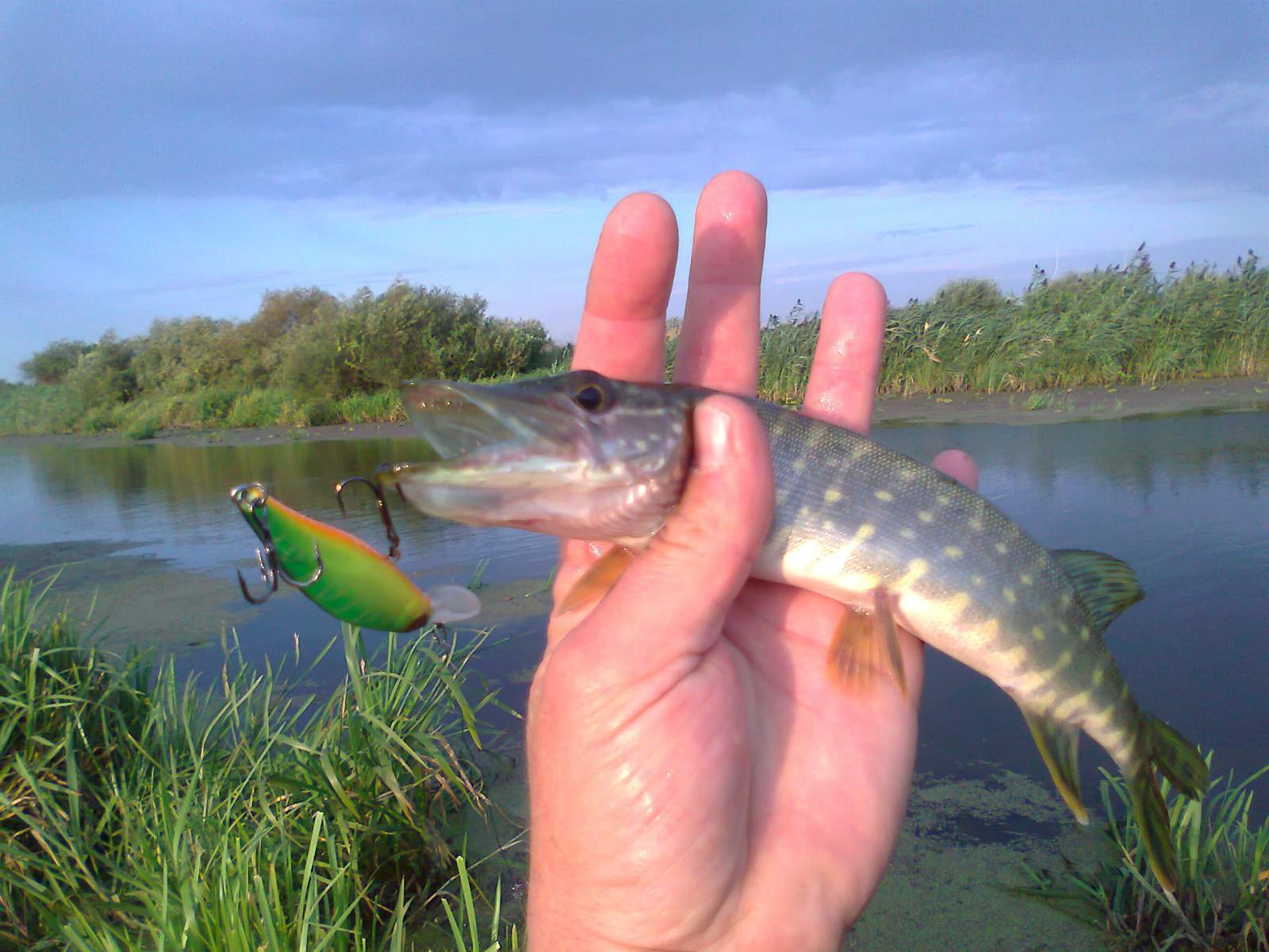 Запізнілий звіт про ранкову вилазку на одну зі стариць. Прибули з друзями на місце о 6 ранку, туман навколо хоч в око стрель, вже за 20 метрів не видно нічого і як виявилось вся сторона де ми ще кілька днів тому вдало (і не дуже) ловили щуку, затягнута ряскою. Прийшлось іти трохи далі. До години сьомої жодних клювань, а вже як сонце трохи почало пригрівати і туман розвіявся, щука почала активізовуватися, було кілька виходів на попери, але активність була не такою як хотілося б нам. Ще за годинку полоскання приманок, з-поміж латаття вдалося таки витягнути залікову щучку.