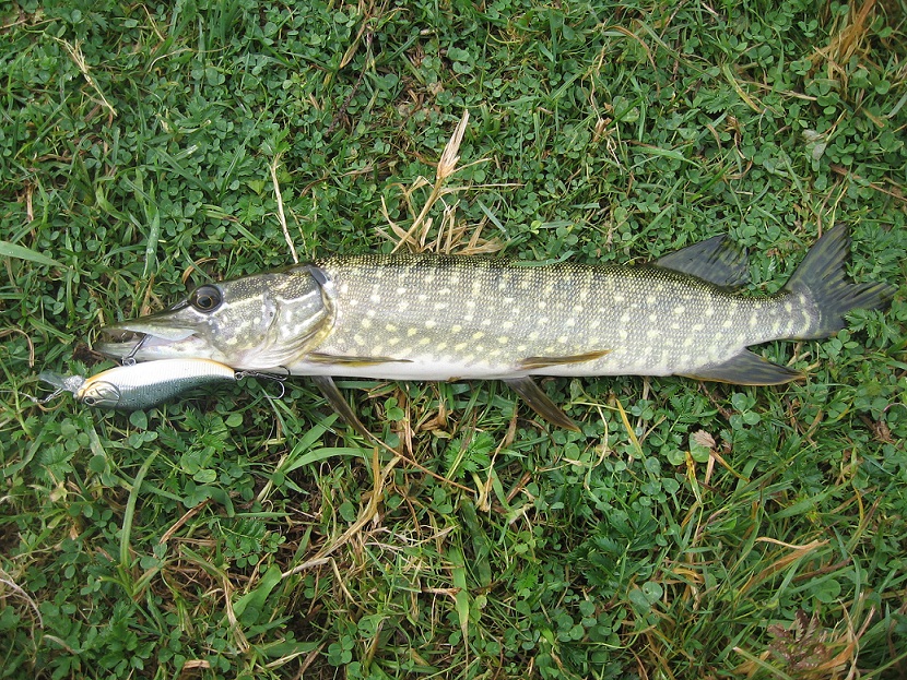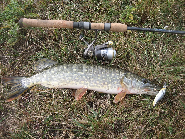 Ловив сьогодні на стариці біля с.Підгайці. Вода дуже прозора. Щука активності не проявляла. Поки не поставив Ескадру від Евергріна і поводок з 0,5 флюра. Закидав в "коридори" між лататтям, воблер проводив повільно, м"яким твічингом, з частими паузами до 5 секунд. Бачив п"ять виходів, щука відвертала в останній момент перед самим воблером. Але дві вдалося вговорити. Черговий вихід на паузі і "шнурок" не відвернув, а схопив Ескадру і потянув в латаття, але "приземлився" на березі. Слідуючу покльвку не бачив, а просто відчув "вис", який "ожив" і потянув воблер в сторону по дузі на метрів десять. Вже не далеко від берега досить непогана щука вийшла на поверхню, потім з останніх сил стягнула з фрикціону пару метрів лєски і все таки здалась.