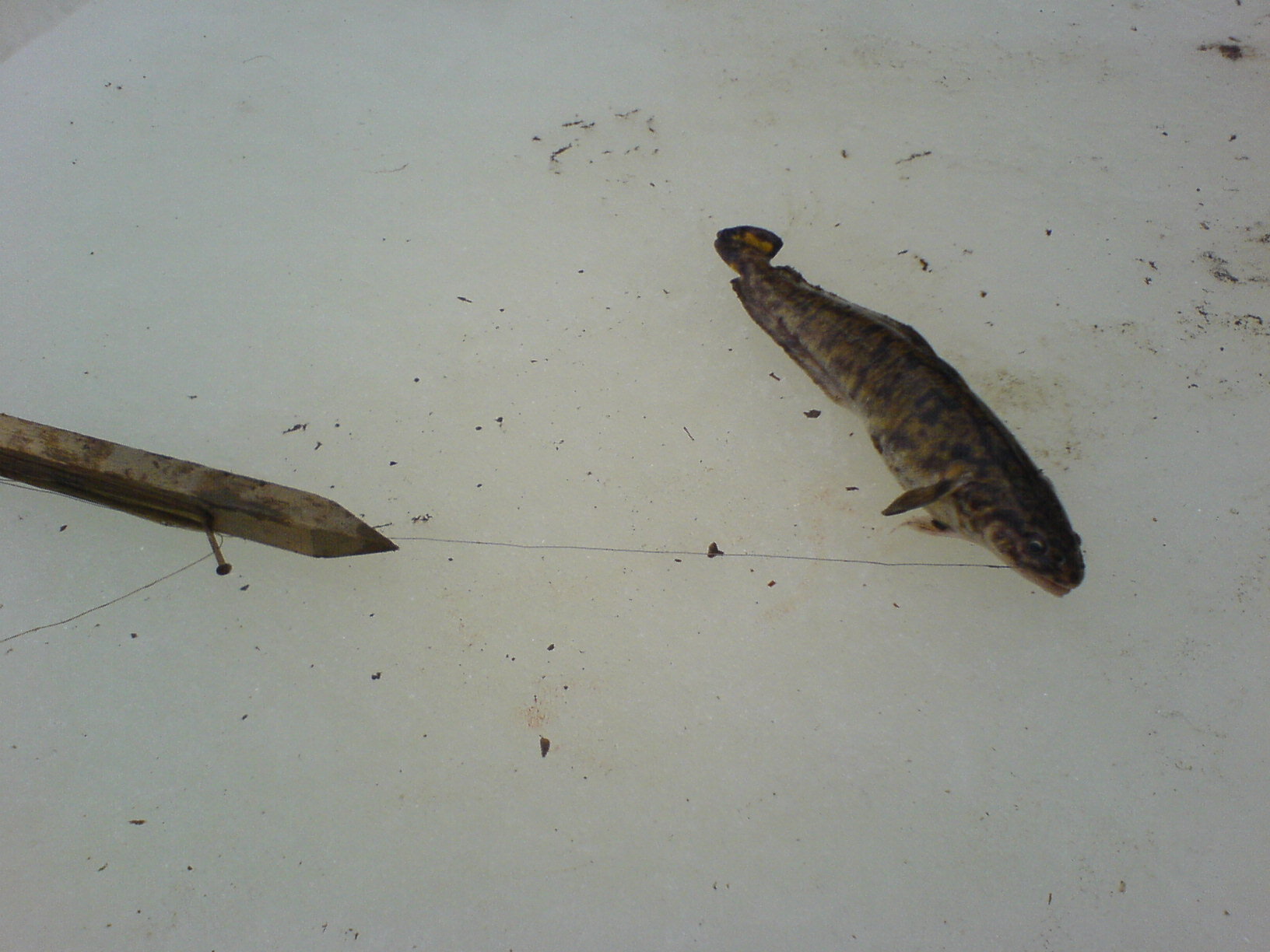 р.Стир 8.03.09р. З вечора поїхав поставив на налима закидушки цього разу без експерементів на пучок червяків. Поставив всього 12 донок. Зранку десь 8.30 поїхав правда налима не зловив, а всеж таки одного головника десь грам 350-400 витягнув.