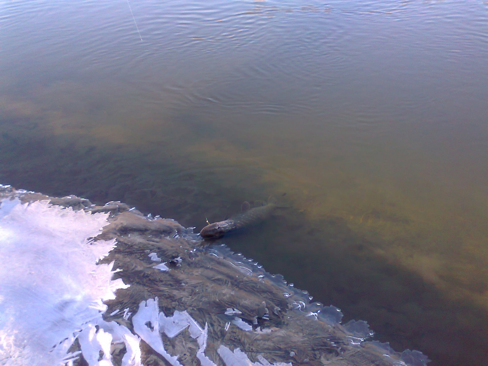 розпочали сьогоднішню рибалку в Малево. Полоскали приманки майже до обіда, хтось відловився, а хтось і клювання не бачив. Вирішили смитися в Хрінники і не прогадали, за дві з половиною години більше двох десятків хвостів + сходи і нереалізовані клювання. Морозець повернувся, кільця знову обмерзають, стояки затягує кригою :(