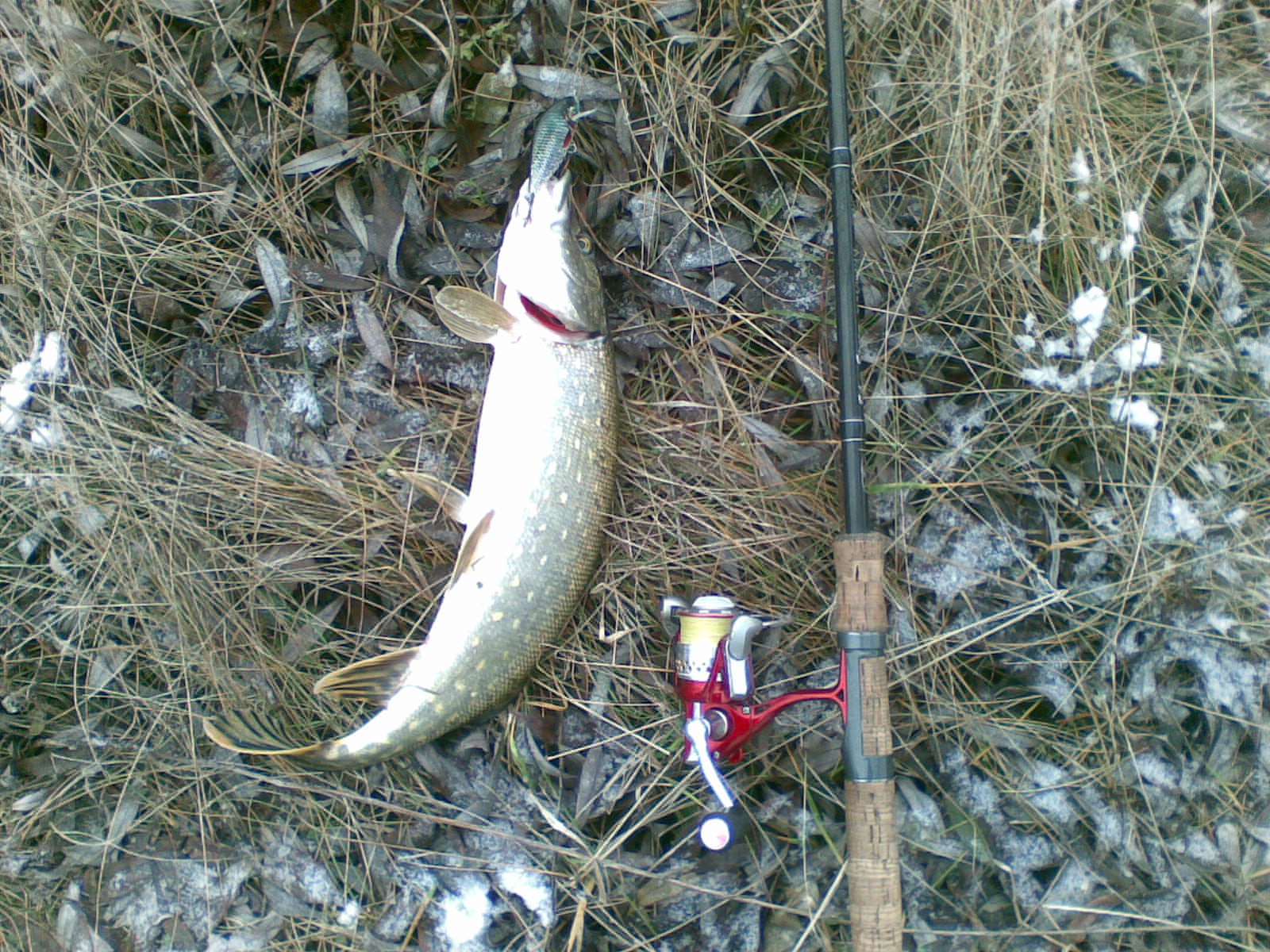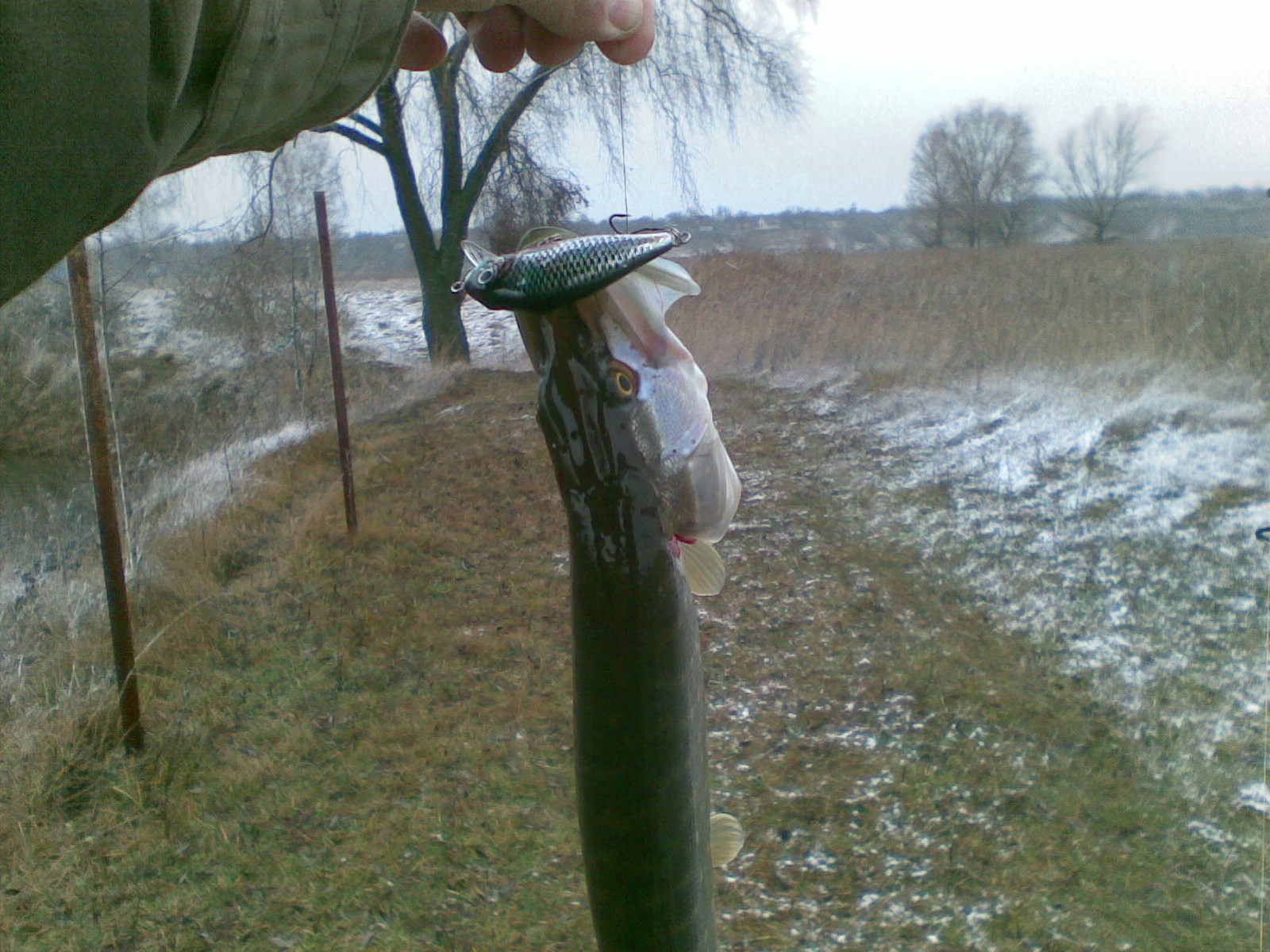 Наконец-то разловил Jaxon Karas 8F, но как!!! Решил проверить как дела обстоят на Сумском водохранилище... На водоёме в 11-00. Погодка ещё та, мокрый снег и сильный ветер... как говорят, хороший хозяин собаку гулять не пустит... Выбрал правый берег. Прошёлся по первой затоке и чуть дальше... тишина. Замёрз, резиновые сапоги однако не греют и на два носка... На обратном пути увидел "лужу" фото 1,2. Ставлю Jaxon Karas и на второй проводке щука 1,2кг. Ура!!! : Веры в приманку не было... Продолжаю не особо веря в дальнейший успех... Пару проводок и ещё одна ~0,6кг. Не ожидал... :i070522: Продолжаю... Пару проводок и ещё одна ~0,5кг. Глазам своим не верю, водоём - лужа!!! :i070522: Продолжаю... Снова поклёвка и... сход. Визуально - около кила... Дальше тишина, побросал ещё минут 10-15 и домой. Замёрз (в ноги) однако... Итог за 30 минут (с учётом вынимания приманки и фотографирования) четыре поклёвки в луже, три реализовал. З.Ы. Фотки мобильником, сорри...