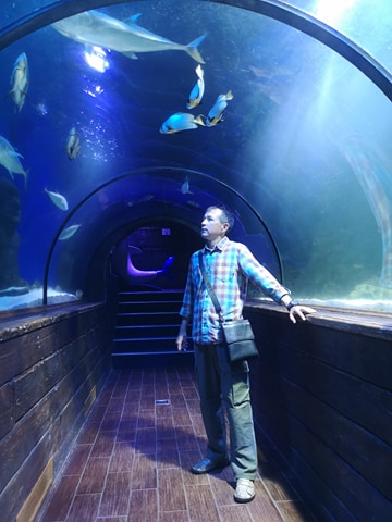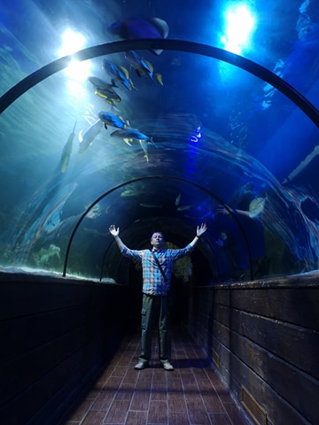 Всех приветствую! Отдыхать предпочитаю с познавательной целью. Вот на День Конституции посетили с семьёй Киевский океанариум. До сих пор под впечатлением о разнообразии и красоте обитателей морей и океанов. Так как дети уже взрослые удалось задержаться у каждого аквариума и получить максимум информации. Информации очень много - вкратце скажу, что в нескольких залах в аквариумах, как закрытых так и открытых находятся обитатели глубин. Есть аквариумы с разноцветными твёрдыми и мягкими кораллами, которые растут целыми лесами. Особенно поразил туннель, расположенный на глубине 2м. под водой, от рыб посетителей отделяет только 8 см. акриловое стекло. Ну а рыб столько, что всех перечислить невозможно, тут есть ядовитая рыба - собака( фугу), мурены, пираньи, крокодил, акулы, гигантские черепахи. Целый открытый аквариум выделен для скатов и карпов. Так же есть рыба - хирург, рыба - клоун, особенно запомнилась рыба - корова( жёлтый кузовок) за её необычный вид. Имеется аквариум со светящимися рыбами, в их ДНК имеется ген, который и даёт свечение. Также много медуз, морских звёзд, морских ежей. В общем удовольствие получил чего и вам желаю.