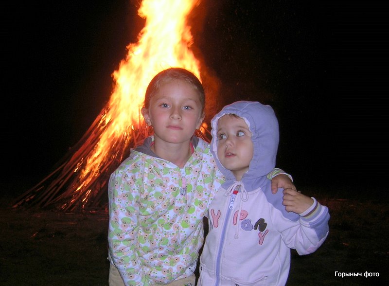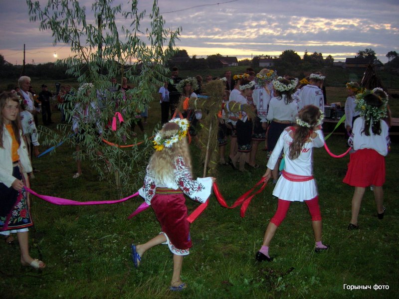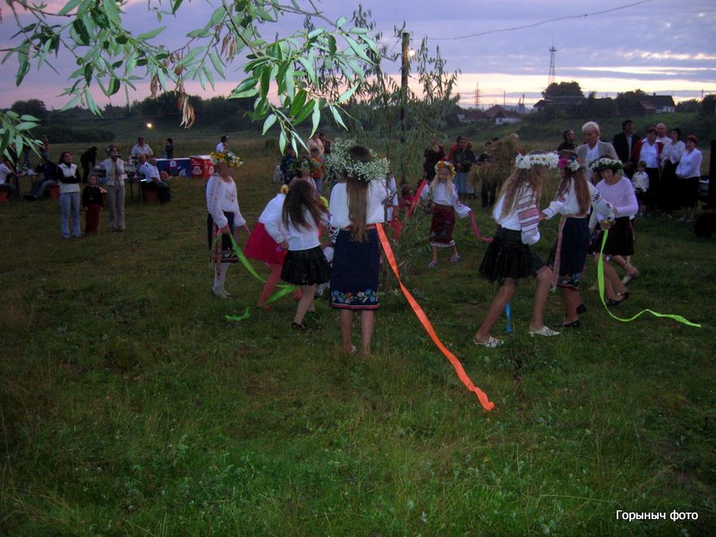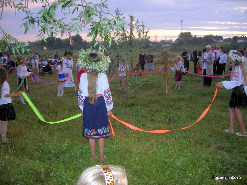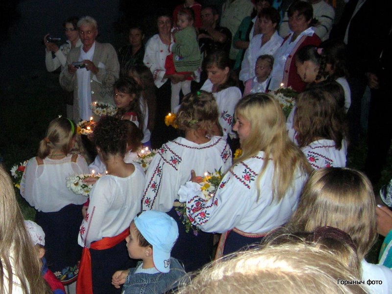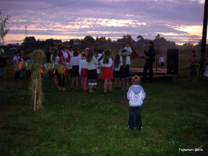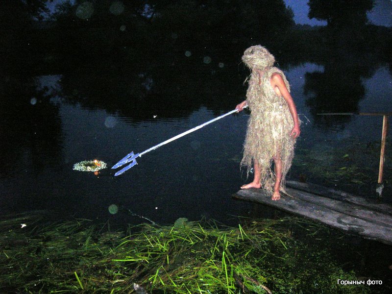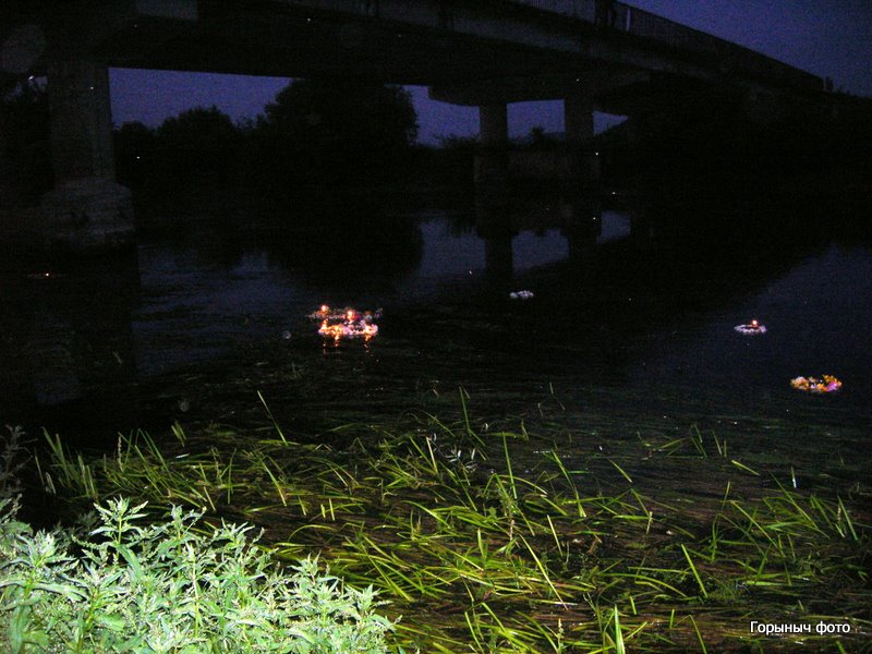 Зажигают свечки на веночках. Зовут Водяного, который берет веночки трезубом и отправляет венки в плаванье по Горыни… Потом был концерт и конечно костер…