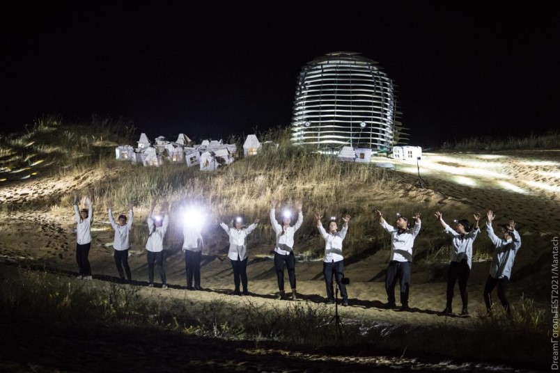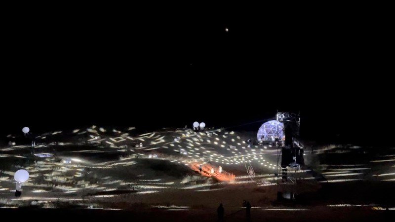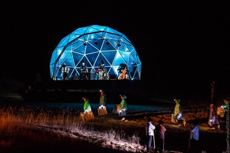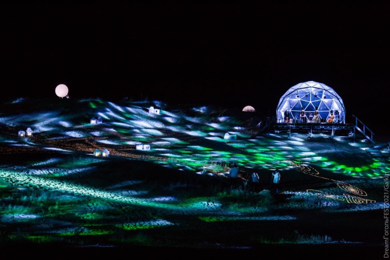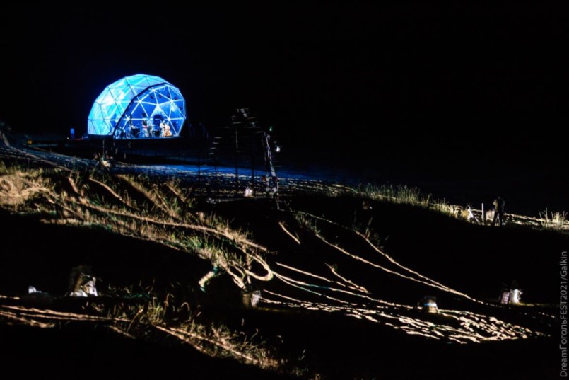 Всех приветствую! В рамках фестиваля современного искусства ГогольFest посетил семьёй уникальный концерт, который прошёл на песчаных барханах в национальном парке Олешковские пески под Херсоном. Мероприятие такого плана среди 30 метровых барханов проходило впервые и привлекло большое количество зрителей. Сцена была установлена на наивысшей точке Олешковских песков и она напоминает космический объект, также было установлено 3 огромных проектора по 26 тыс. люменов, так как всё это световое шоу проходило в тёмное время. Ну и основными исполнителями была группа ДахаБраха, которая исполняла песни в стиле этно - хаус, а пустыня добавляла чистоту звучания. По словам руководителя этого мероприятия Влада Троицкого оно подготовлено к 30 - летию независимости Украины. В основе представления - переосмысление странствий Моисея. От себя могу сказать, что на мероприятии в таком формате побывал впервые и это ночное световое представление в пустыне, да ещё под музыку этно - хауса произвело большое впечатление. Было очень много зрителей, которых свозили организованно автобусами, кто - то приезжал своим транспортом.