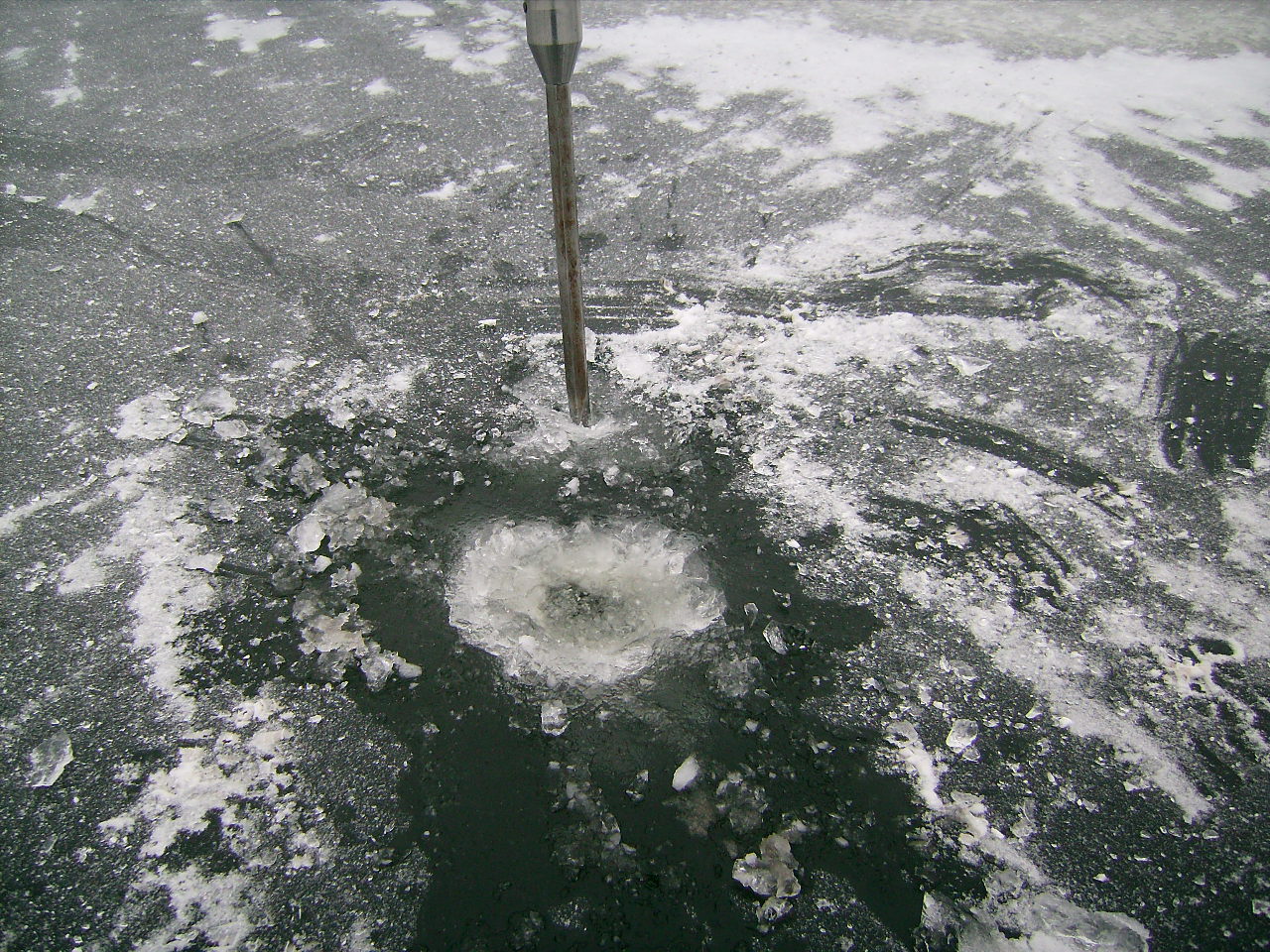 Толщина льда - от 4 до 12 см, пробивается с двух-восьми ударов. Надо выходить рыбачить, а то с Эвропы сунет тёплый циклон, походу, опять НГ будем праздновать без снега... Конечно, если переживём завтрашний конец света... )))))