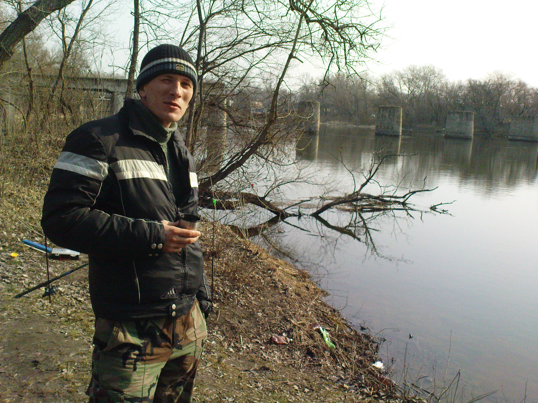 Сегодня решили с женой провести разведку боем на Псле, р-н ж/д моста. Погодка супер, ветра почти нет, птички поют, рыбка НЕ КЛЮЁТ :). За три часа три шт. народу можно сказать вообще нет(как и рыбы), кроме 3-х парней и то далеко от нас были. Ловить пытались на опрыш. Под мостом пробывал покидать силикон, был один не понятный тычок, вытащил чешую на крючке. В общем разведка удалась, посидели на природе, еще б поезда не шумели было б совсем хорошо!