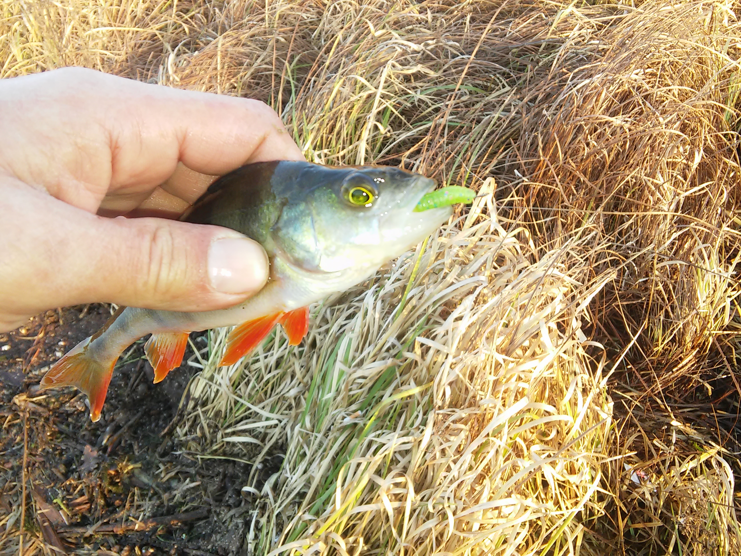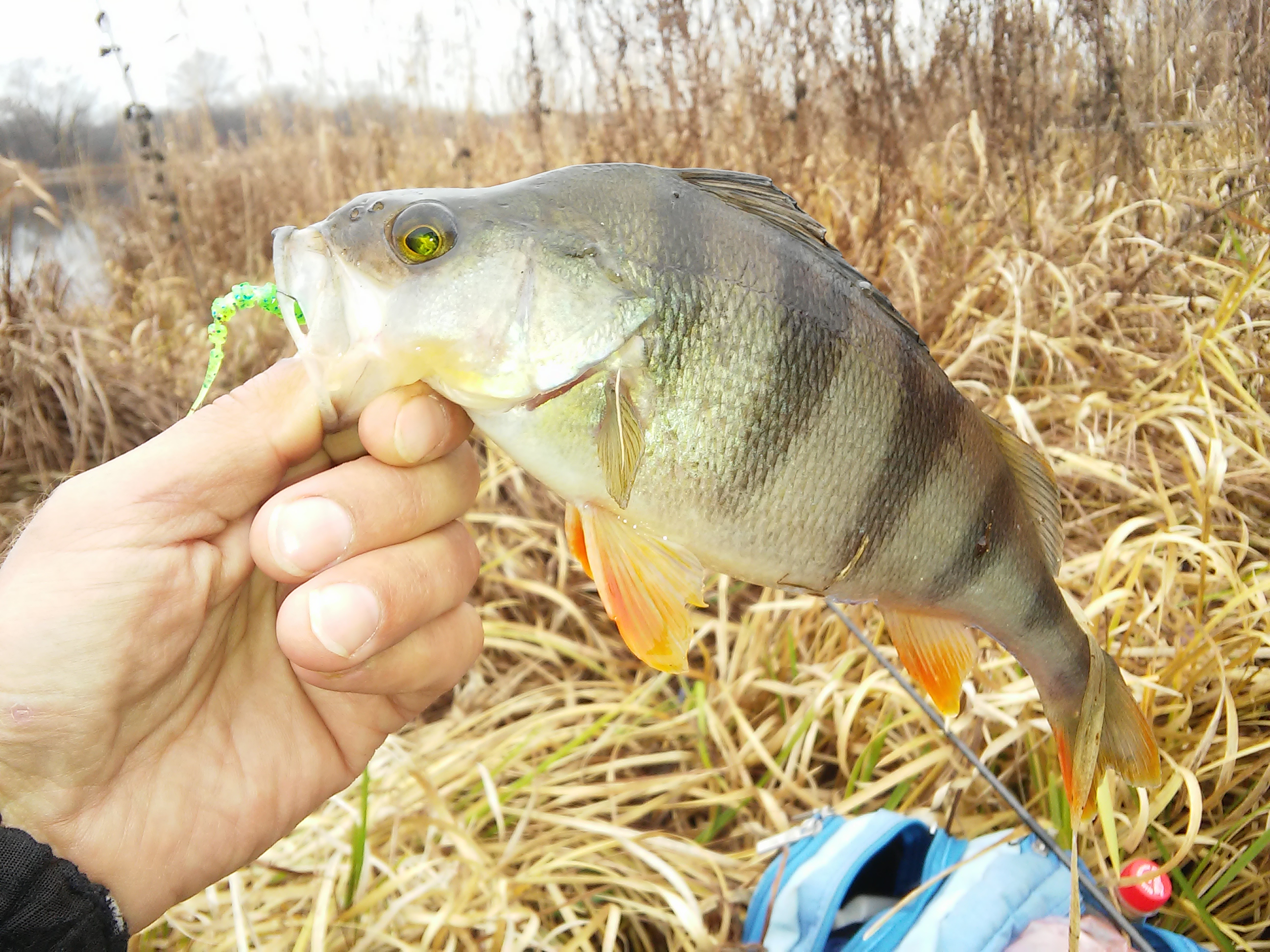 Сегодня с утра терзали смутные сомнения,ехать или не ехать!Температура плюсовая,но обещали ветер,все таки ЕХАТЬ победило.Так как по погоде в ближайшее время одни минуса,может уже скоро выйдем на лед,ну а пока спининг до упора, пока будет жидкая вода.Приехал на рыбное место не рано,около 8-ми,хотя нужно было по раньше,хороший клев был до 10-30.Сегодня поклевки были дерзкие,типа отдай спин,окунь более-менее жирный,но оно и понятно,у каждого второго вместе с моей приманкой торчала тюлька,окунь интенсивно кормился.Работали все мои приманки и все расцветки,разловил новую приманку НАНОМИНОВ,на нее клевали более жирные окуня и очень агрессивно.После пару выловленных окуней,постоянно менял приманки и расцветки,все работало!Лучше наверное работали прозрачные приманки с разноцветными блестками,а может просто я в них больше упирался,в принципе все приманки отработали на отлично!Еще одна отличная рыбалка в этом году состоялась.