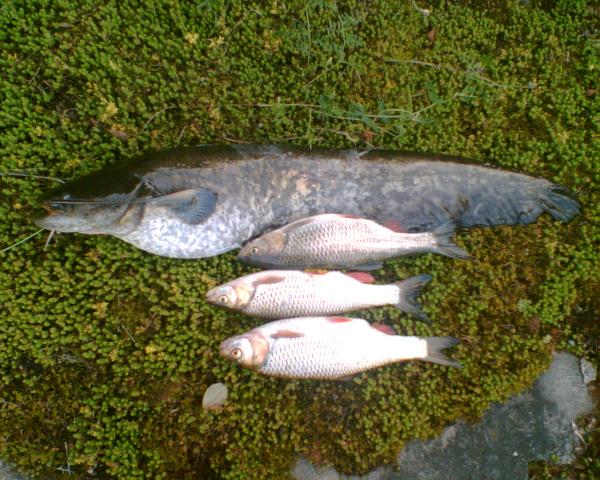 Приехали мы в 3, перекимарили 1,5 часика и вперед в бой! Но к сожалению боя не было. Облазили и один и другой берег-все прошлые точки молчали. Пробовал на сома, но ничего с этого не получилось, хотя видели мужиков с "топтанкой" и у них был сомик кил на 10. от нечего делать пробовал микрушить - пару окушков выманил.