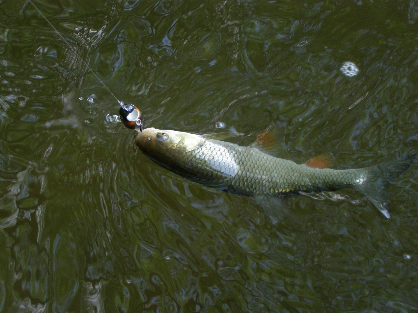 На очередной перспективной точке, после нескольких забросов, почувствовал зацеп, который резко зашевелился. Но так как на ультра лайт рыбка как то не особо сопротивляется, то по началу подума, что с пол кило голавлишка. А когда подвел его к берегу был приятно удивлен, в нем кило было, а это уже трофей для тех мест. Фотосессия прошла успешно и аривидерчи. После этого трофея рыбалка, можно так сказать, закончилась. Полоскание всего арсенала не привело больше ни к чему. Только при переезде на новое место побаловался с маньячкой и выловил микро-голавля и окушка. На этом рыбалку закончили и в 18,00 выдвинулись на Киев. Природа там конечно очень красивая.