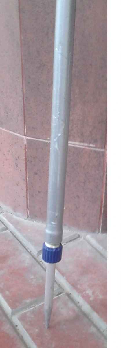 Заодно и нужность тычки проверю. Смастерил оную из подручных материалов: труба пластиковая, бегунок-зажим для душа, пика от фабричной тычки и зажим резьбовой от швабры:D. Кстати, в зажиме для душа очень неплохо фиксируется удилище.
