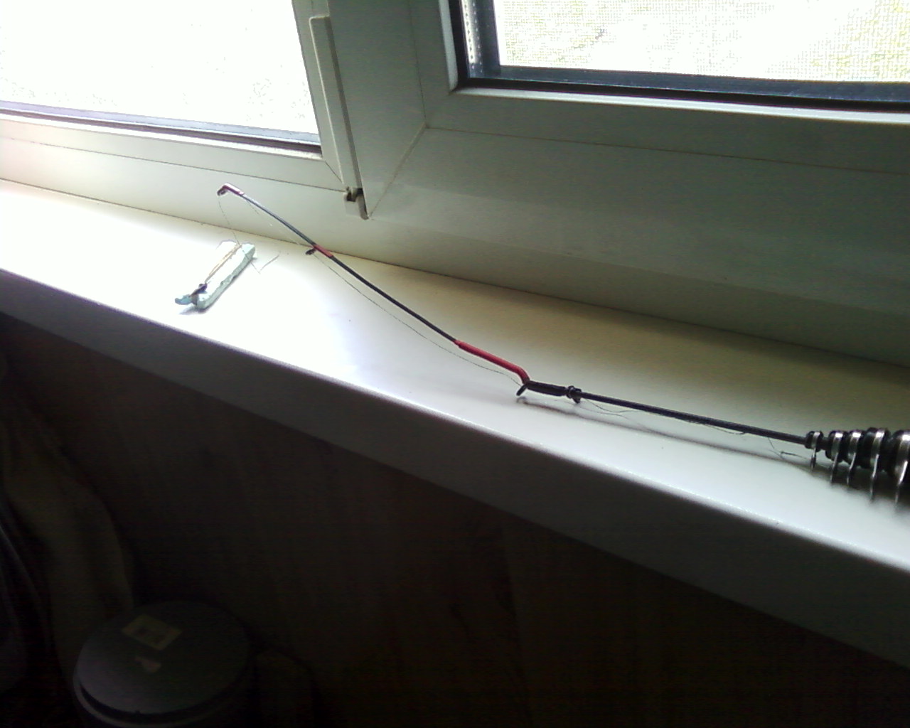 Начал подбирать себе удочку. На барахолке нашел китайца 7 метров, весом 380 грамм по бросовой цене. Удилище понравилось, жесткое и длинное. Приобрел дополнительно полые карбоновые вершинки. Сделал заготовки для кивка. На этом пока все. Отложил.