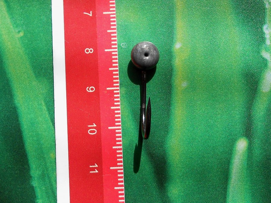 Вес мормышки подбирается под кивок. Кивок на фото с карбоновой удочки, скажем так - тест по мормышкам 0.75-1.5 гр. Поэтому мормышки для карася в этом весе, в районе 1 грамма. В процессе ловли, с усилением ветра или течения, можно до утяжелить мормышку дробинкой в притык к ней. Получим чебурашку с джиг головкой. Для карпа все мощнее.
