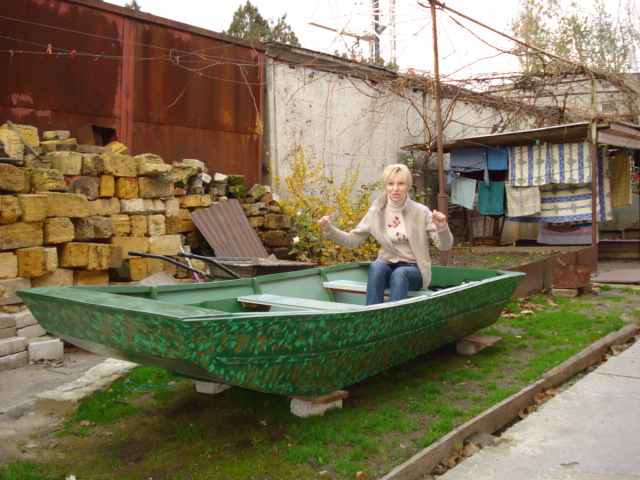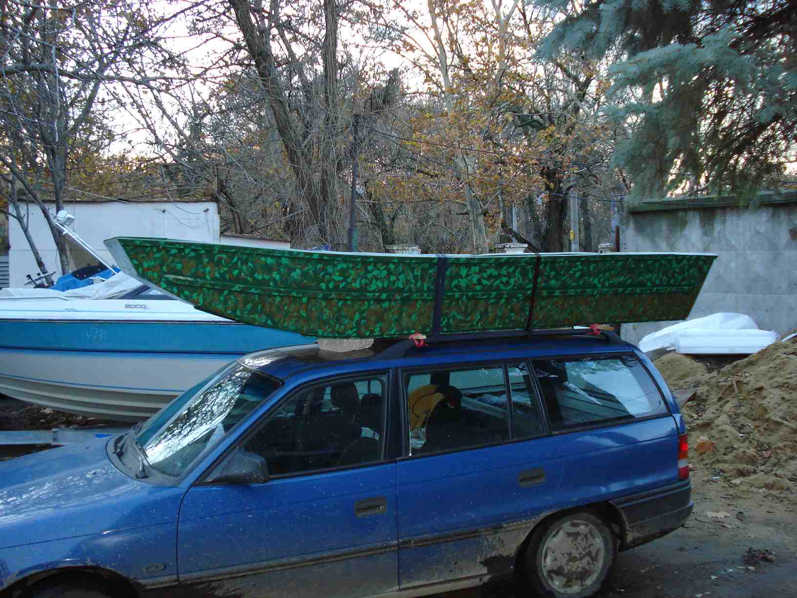 Для строительства использовалась фанера ФСФ 4 мм. (борта) и 7 мм. (днище). Днище, борта и скулы проклеенны стекловолокном. Технология сшей и склей. Сейчас друзья просят построить 4 м. Посмотрим. Пользовал старенький Johnson 5л.с. и для эксперимента Mercury 15 \ 4т. думаю нужен промежуточный вариант (10 л.с.). Очень удобная конструкция для рыбалки (охотой не увлекаюсь), хотя по проекту длина должна состовлять 3.6 м. решил остановится на меньшей длине для удобства перевозки. Таскать за собой прицеп не удобно, а на крыше - в самый раз. Недавно перекрасил и усилил транец. Собираюсь построить лодку другой конструкции - "Дори" (с транцем под мотор).