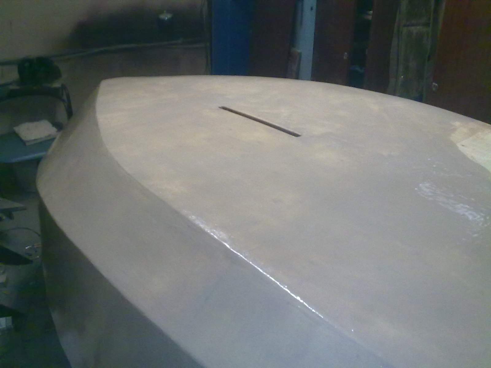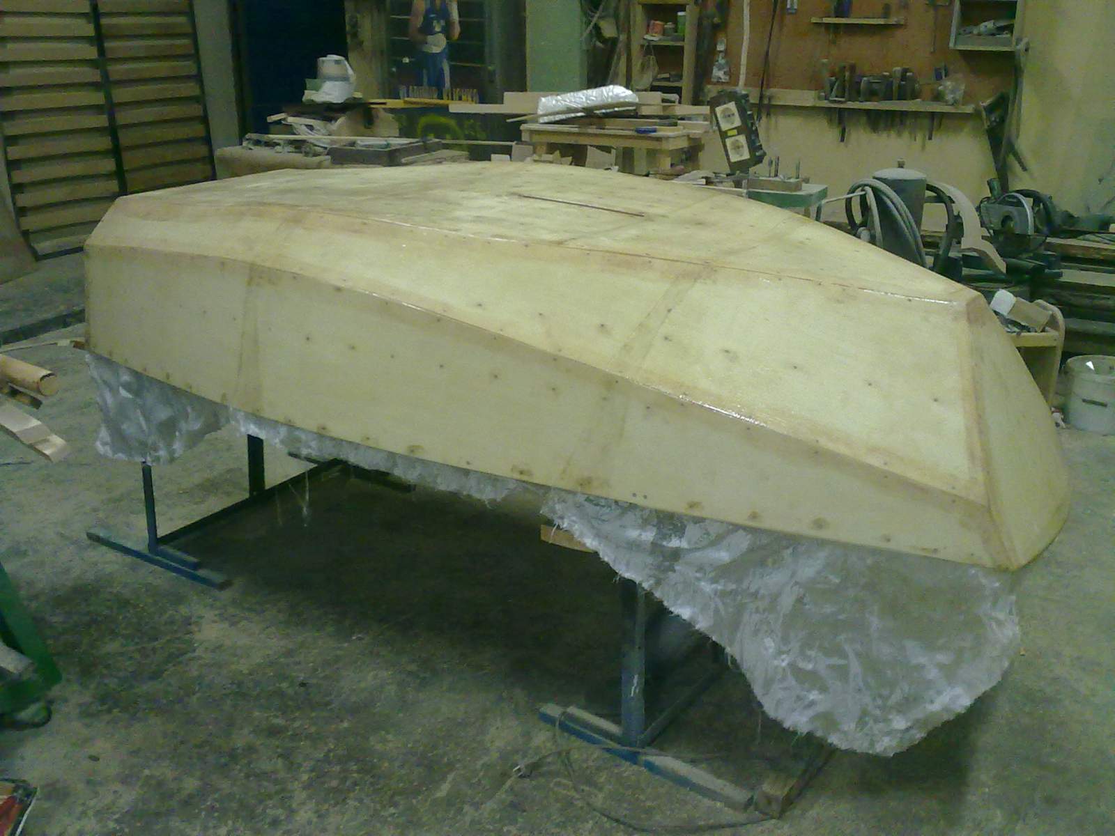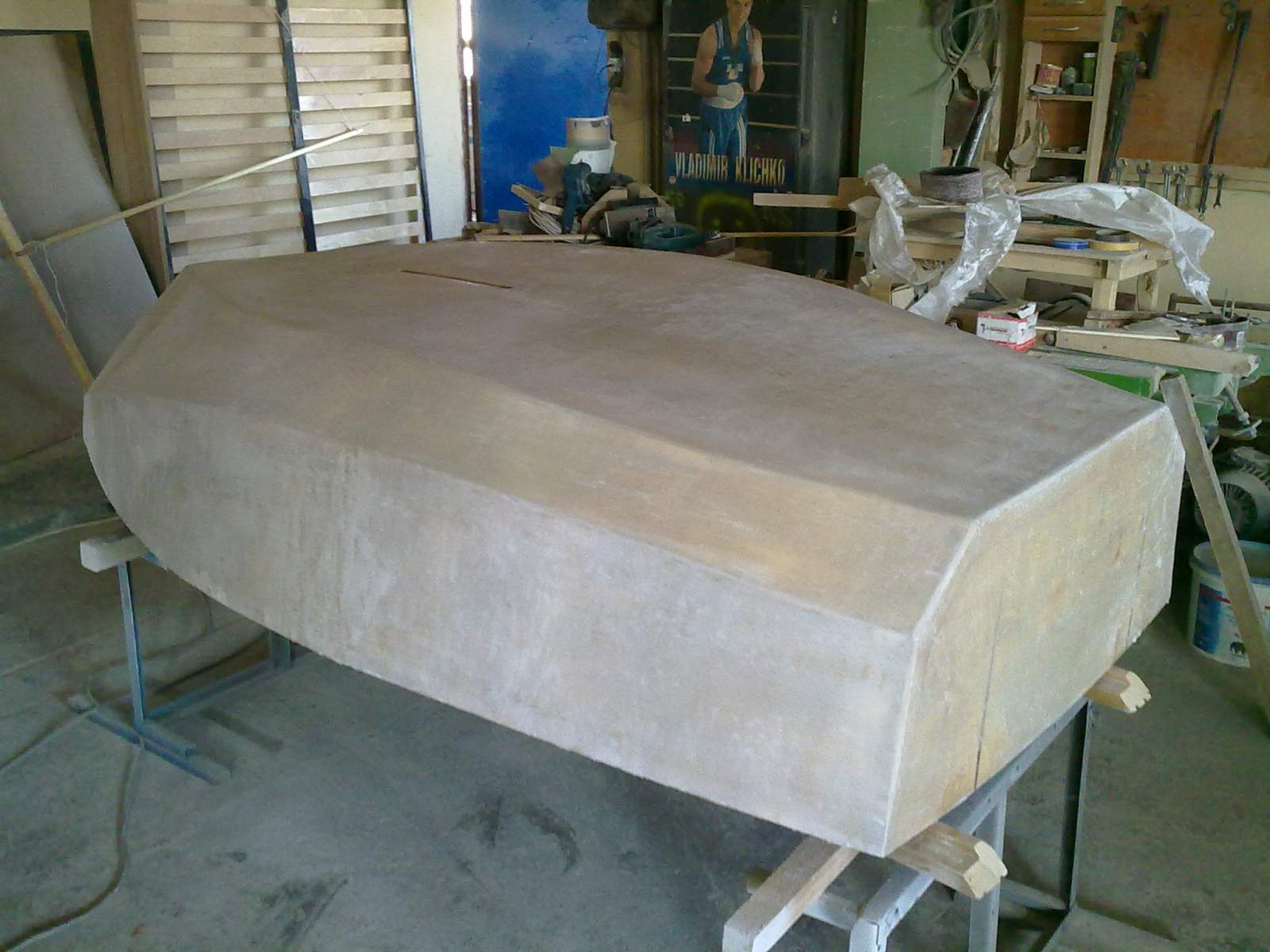 Вот так выглядит моя лодка на данный момент. Еще предстоит повторное шпаклевание и установка киля.