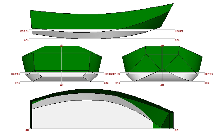 Я дико извиняюсь, забыл сообщить о ТТХ самого корпуса. Длинна 2380 (не подлежит регистрации, если на веслах), ширина на миделе 1320, высота борта 450, водоизмещение полное 250 кг. Осадка при 150 кг на диаграмме.