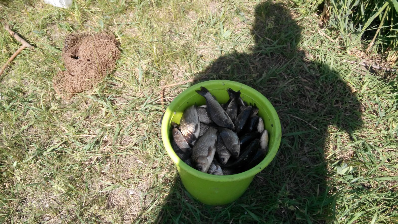 Был в этом году во второй половине мая, точно не помню. Решение о рыбалке на данном ставке было принято очень спонтанно, благодаря соседу. Оплата была 50 гривен. Утром в 6.30 был на воде, вернее у воды на большой плотине. Рядом сидела шумная компания фидеристов или кормушечников, переодически ловящих карася и небольших карпиков до 500 грамм. За себя скажу, что невзирая на количество разрешенных снастей на этом платном водоеме, я ловил на одну маховую карбоновую удочку 5-ти метров (на 2 шт. уже было нереально). Наживка была манка, не кормил ни чем. Рыба можно сказать голодная, хватала и тянула на глубину. На месте лова глубина была 1-1,2 метра. Карась не крупный 70-100 грамм, крупные особи не попадались, да и цель такая не ставилась. Поймал очень прилично, по причине жары и веса пойманной рыбы в 12.00 уехал. Решил выложить фото пойманной рыбы, что бы можно было оценить размер карася. Просьба умников не гадить на мой отчет, я честно заплатил деньги сборщику ставка, при этом выяснил, что никаких ограничений по вылову НЕТ! Пойманную рыбу развез "голодным" родственникам! Сейчас есть информация по данному водоему, что оплата-100 гривен. Ловят карпа до 1 кг, на донки без кормушек(по причине постоянных атак мелкого карася), на горох.