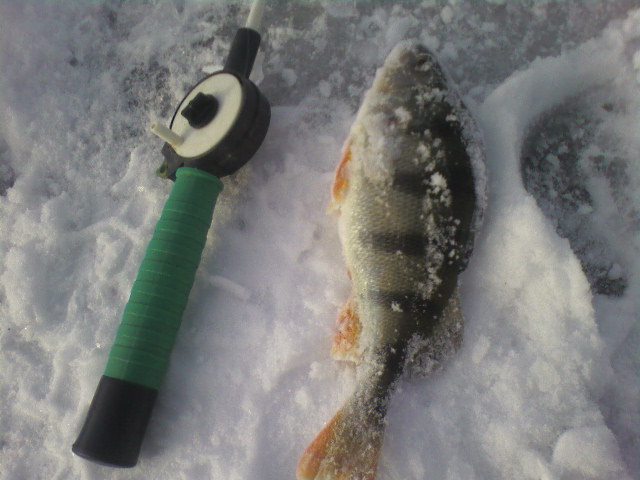 25ого вирiшив пiти на парошку у розвiдку на наявнiсть щуки та окуня на льду було усьог 6 рибакiв один на жерлицi iншi шукали окуня та йорша мормихами поцiкавився успiхами на жерлицi нуль у iнших 2-3 йоршика я вирiшив налякати когось блешнями)) i в першiй же лунцi удар i окунь на грам 300 э ого! для парошки дуже хороший результат потiм впiймав ще двох i все. завтра спробуэм на жерлицi а вось пощастить)
