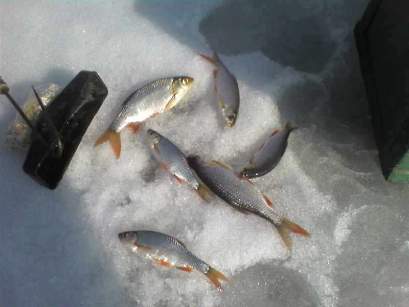 14ого вiдкрив сезон рибалив на сахзаводськом результат 31 окунь на мормиху клювало добре як на мормиху так i на блешню. 15ого знову на льду кльйов трiшки гiрший зловив 20 окунiв на мормиху вирiшив перейти на блешню до цього на блешнi не ловив вiдповiдно рибу шукав довго але ось в однiй лункi удар неспiша пiдвожу рибу i на льду опиняэться КРАСНОПIРКА грам на 400 взяла по всiм правилам блешня в ротi оце несподiванка потiм зловив ще десяток окунiв тей додому