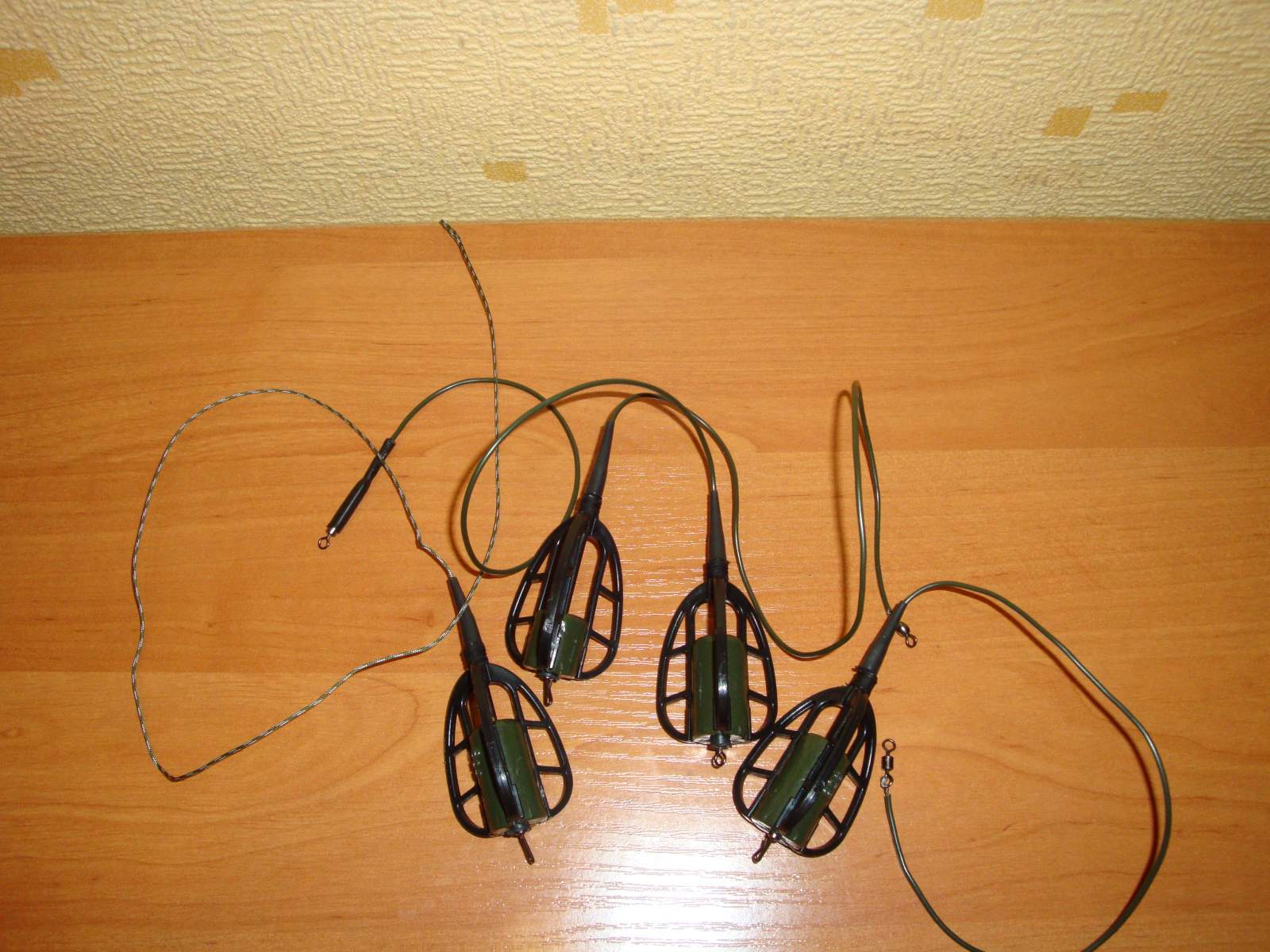 Я вместо лески использую спининговые поводки-две бусинки,меняю карабин на более мелкий,крючки с поводками разной длины.Оснащаю одним крючком или ставлю коромысло.в итоге-очень быстрый монтаж,быстрая смена крючков,хорошая чуствительность.]