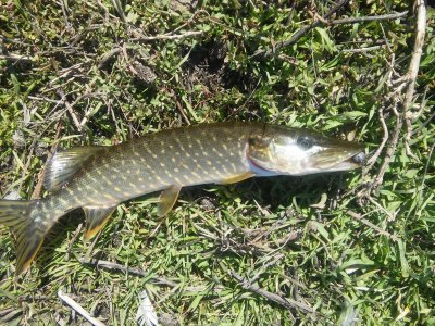 Получив вчера новый спин решил что с утра нужно ехать испытывать. Батя, решив что искать зубатую рано, вооружился поплавчанкой. Щука с самого утра не проявляла активности, но мне хотелось узнать как палка дергает воблерки, на улов почти не расчитывал. На одной из проводок происходит жадный удар, и понеслась, закилушка на берегу, сезон открыт:predator: