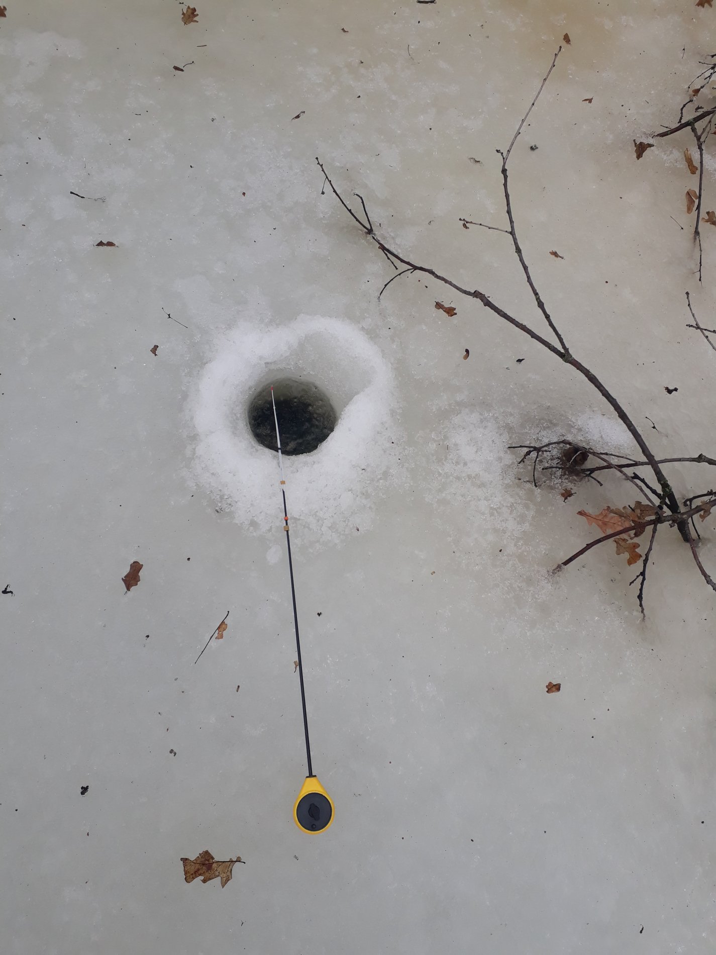 Сегодня опять Терновский розлив . Прошлый раз находил его по ямкам , но сегодня сильно не гозгонишся туда ледок подустал спасибо вчерашнему дождику . Немного нащупал плотвиц на мотыля , но всё же цель краснопёрый хищник . И уже когда терпение было на исходе , бурить и исследовать лунки надоело тут ос себя и проявил . Лёгинькое тук как будто малёчек , но нет это он - окунь . И глубина там меньше метра возле самой стены рогоза . Ну хоть в конце порадовал . Безмотылочку сегодня он проигноривовал , предпочёл мормышечку с одним или двумя мотылями . Всем рыбацюгам НХНЧ .