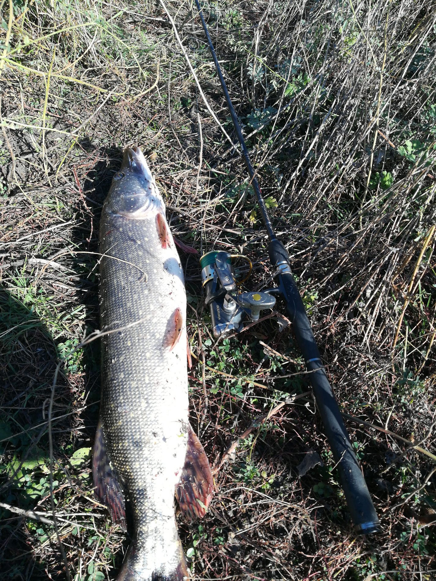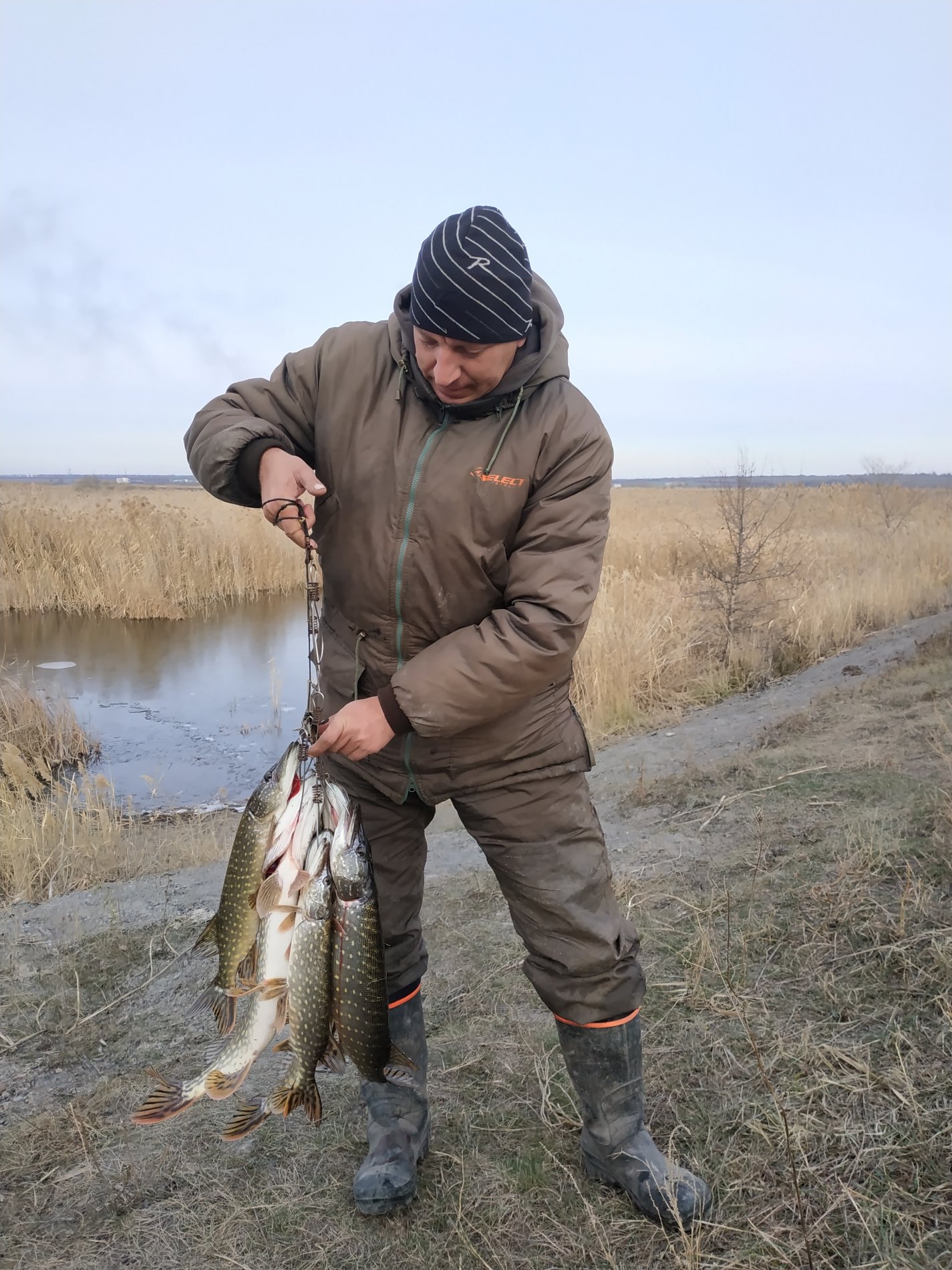 На обратном пути заехали на старое русло, где батя взял хорошую щуку под 3ху.