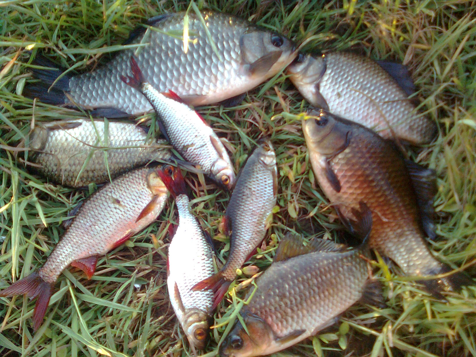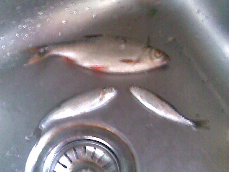 С собой была перловка и червь. Поклевки очень нежные и осторожные, каждая продолжалась до 5 минут. Поплавок потихоньку приподымался из воды на миллиметры и застывал.......... и так постоянно. Пробовал подсекать на этих подьемах - нихрена. Пока поплавок полностью не ложился на воду дела не было. Вода в реке довольно прохладная, глубина в месте лова 1-1,5 метра. Попались два небольших линя. Карасиков забрал на жареху, остальное в воду.