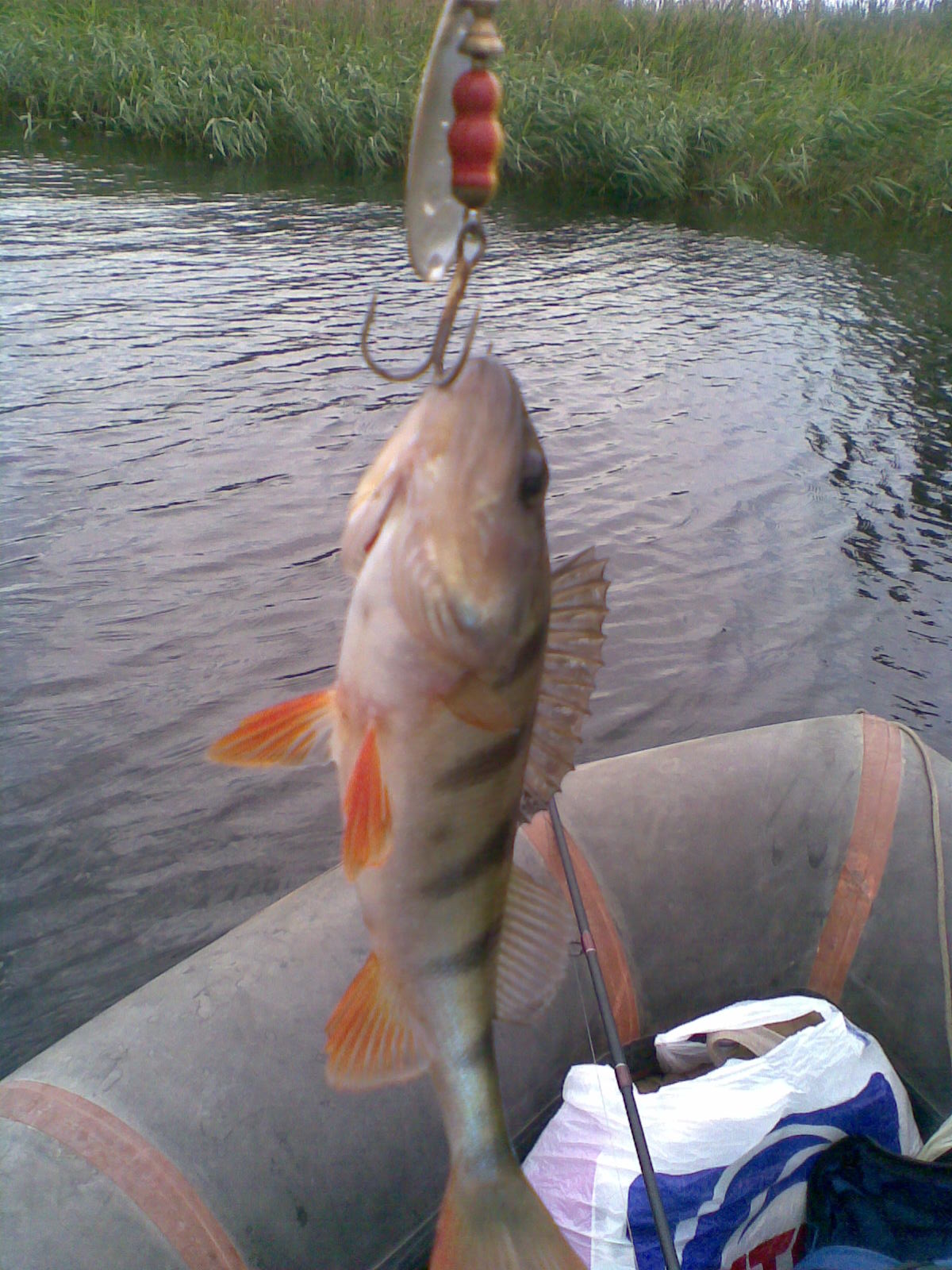 Ну, а мажорная нота такая. Открыл сезон ловли с малого судна:gi-gi::ura:, . положительно. Три клеваки за всю рыбалку было, три реализованных. Первый, с рання щупачок - отправился обратно заканчивать школу хищных рыб. Порадовал тем, что першим з хижаків наніс пошкодження моєму Маскотові - воблер працює. Не зря я выдрал его из лап Нептуна. Потом долго делал так:rybak2: , менял приманки, места ловли. В одном месте, под тросничком, на вертушку ( не окуневого размера, №3 ) - характерные дерг-дерг,... и вот он уже в руках. Очень жаль, что гулял один, без друзей. Подгребая уже к берегу, делаю еще пару бросков, так сказать, на прощание,..., села на ту же вертушку ну уж совсем ясельная щучка, - расти рыпка!
