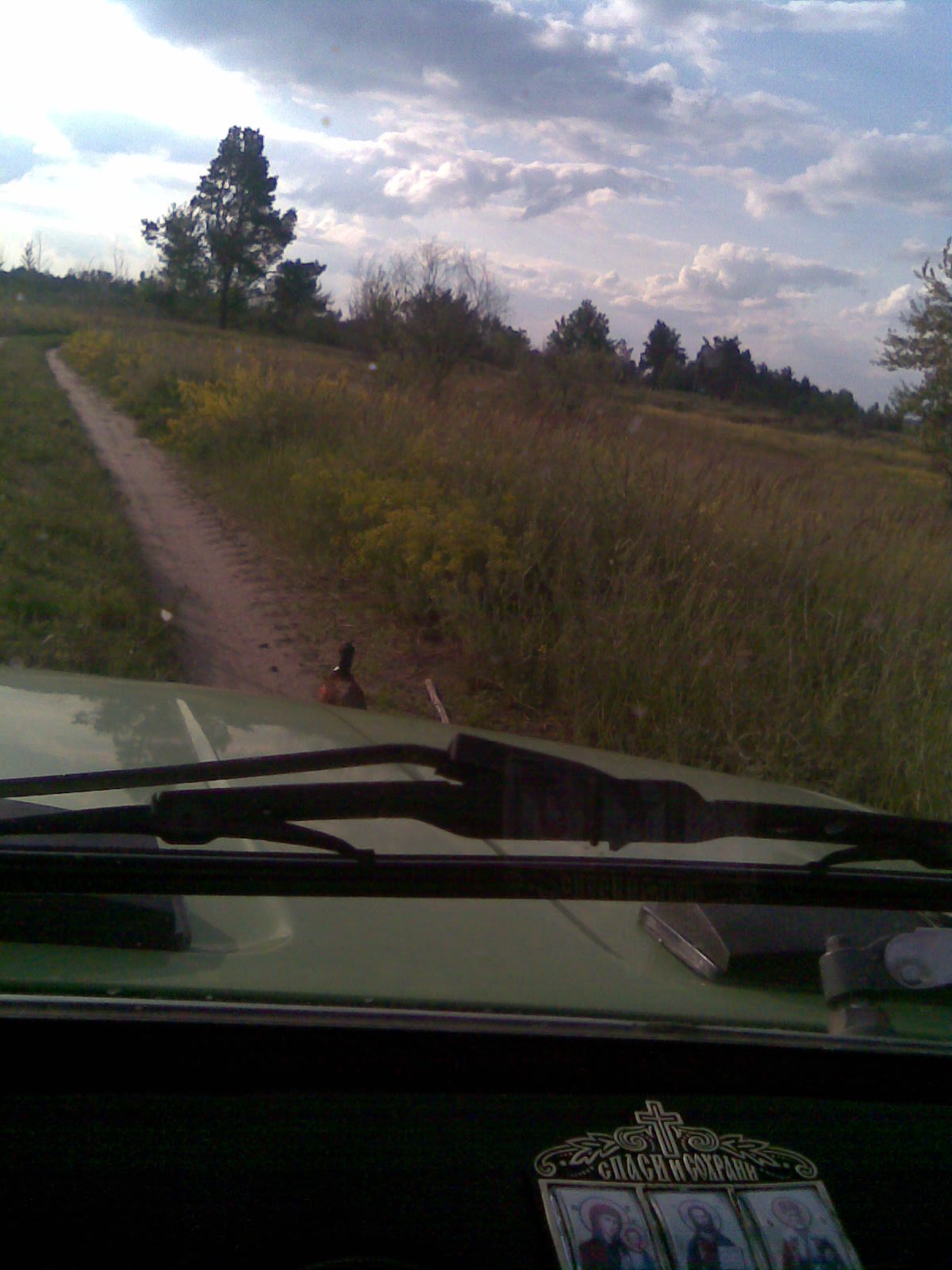 Когда «изучал» степь, помог потренироваться одному экстремальному спортсмену (см.фото). Выскочил он/она из травы и бежит перед машиной… скрылся под капотом – думаю «переехал»… сбросил скорость – оп, выныривает – и бежит дальше. Я притормаживаю – и он притормаживает. Я «газу» - и он «газу». Думаю «ща добегается, что раздавлю», жалко стало, остановил машину – пипец! и он остановился. Стоит и смотрит на меня. Я стартую, и он вперед перед машиной – все повторяется. Короче мне надоело, резко влево, газу – вроде обогнал. На колесах перьев и красных пятен не нашел. Надеюсь этот «олимпиец» выжил.