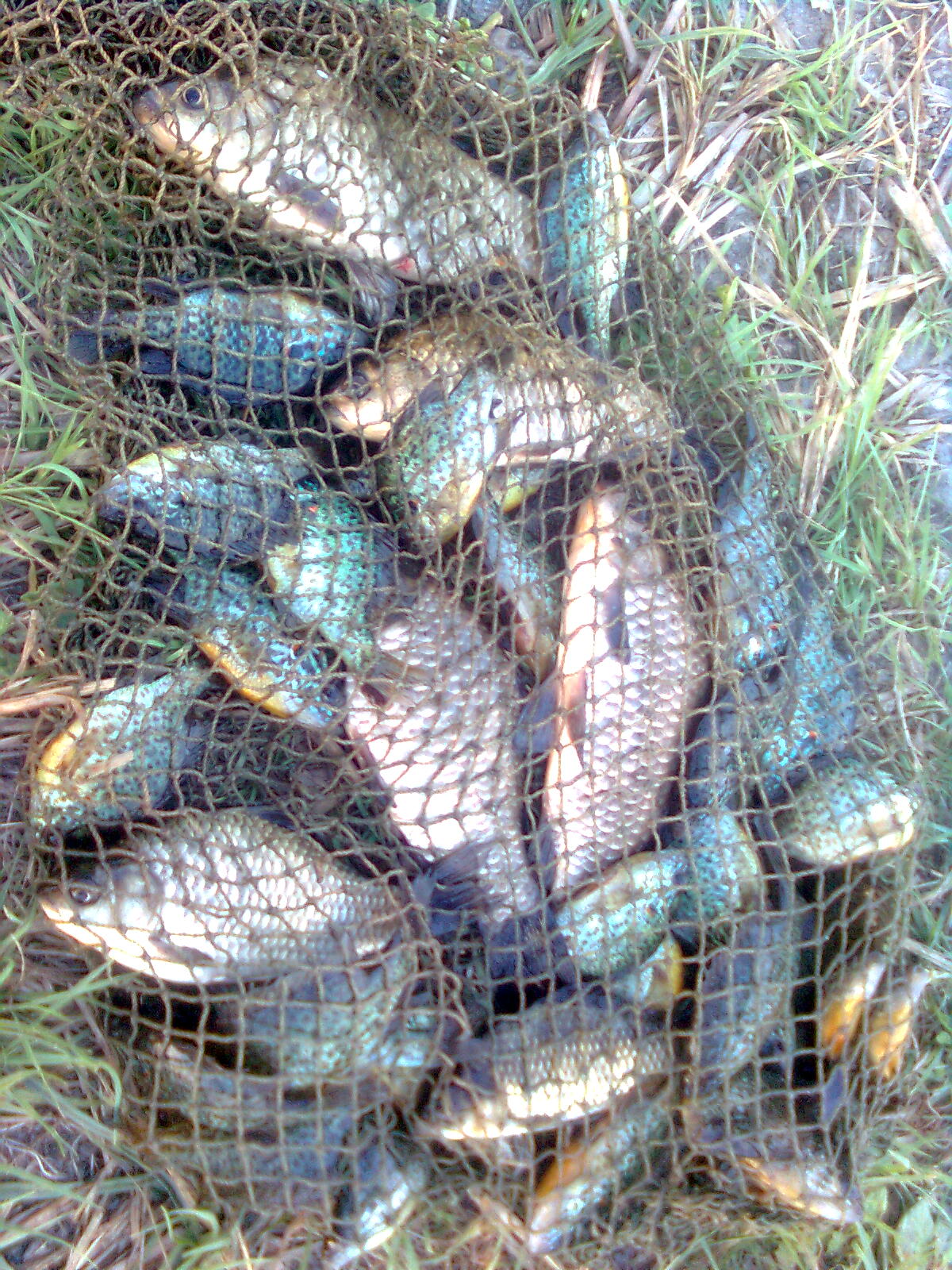 Вымучил 6 карасей. Все поймано на манку. Под вечер трохе уменьшил поголовье солнечного окуня в реке. Вот кому жара похрен. Вся прибрежная зона окупирована, гоняет мелочь, которая даже на берег выпрыгивает. Расплодилось этой гадости просто :censored:
