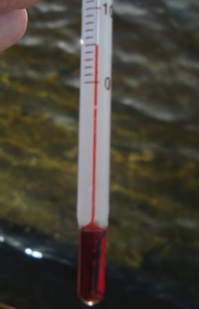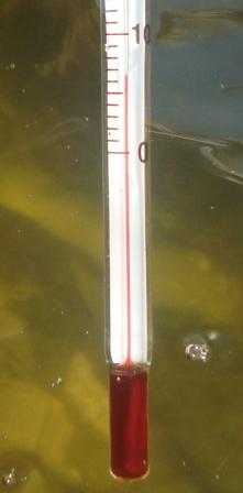 Что получилось. ИТАК: Глубокое место со стороны ул.Карнаухова +5 ,да и немудрено лёд сошёл на днях На отмели там же пляж,солнечная сторона +6,5 Вторя половина : Труба и небольшой залив, практически везде температура та же.До понтона +7 дальше не ходил. В крайне изменилась погода задул сильный ветер,бросать стало бесполезно,поставил тяжёлую блесну,но один тычёк всё же был. И как не странно на неё же.