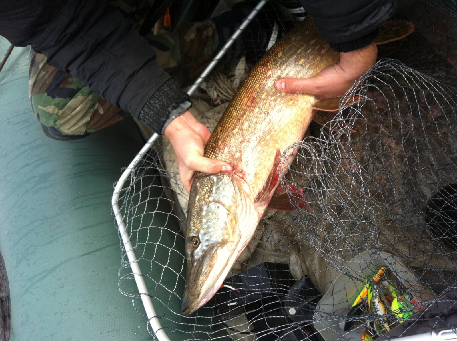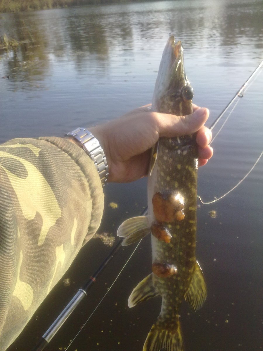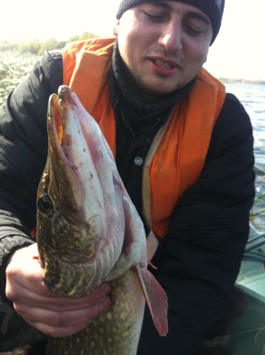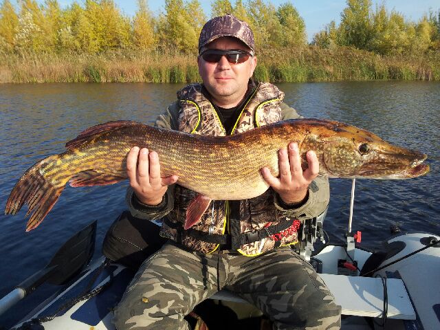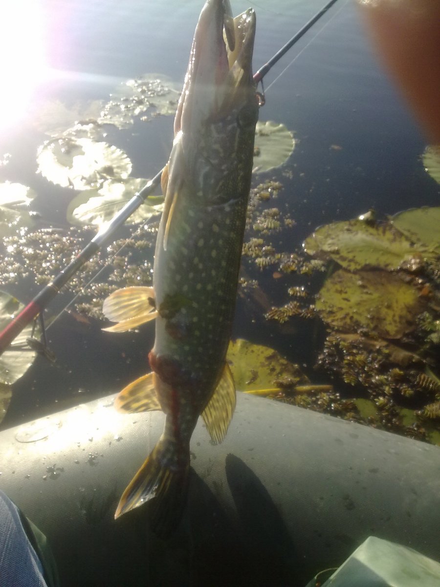 Сегодня рыбачили на тех же местах.Поймал щуку 6к.г.Взяла на губине 5.5 метров на тот же Хорнет 9 с.м.Ударила очень сильно и затихла,думал может цепа но тут началось сопротивление.С пол пути щука пошла на разворот и как дала газу и стянула метров 40 шнура,хотя фрикцион был затянут на пределе безопасного.Такое было впервые стоишь и смотришь на шпулю,а не чего сделать не можешь затягивать сильнее фрикцион было чревато сходом!Появились мысли,что может сом?Потихоньку подтягивал к лодке,еще несколько раз возле лодки уходила на глубину!Общем доставила массу удовольствия!!!!!