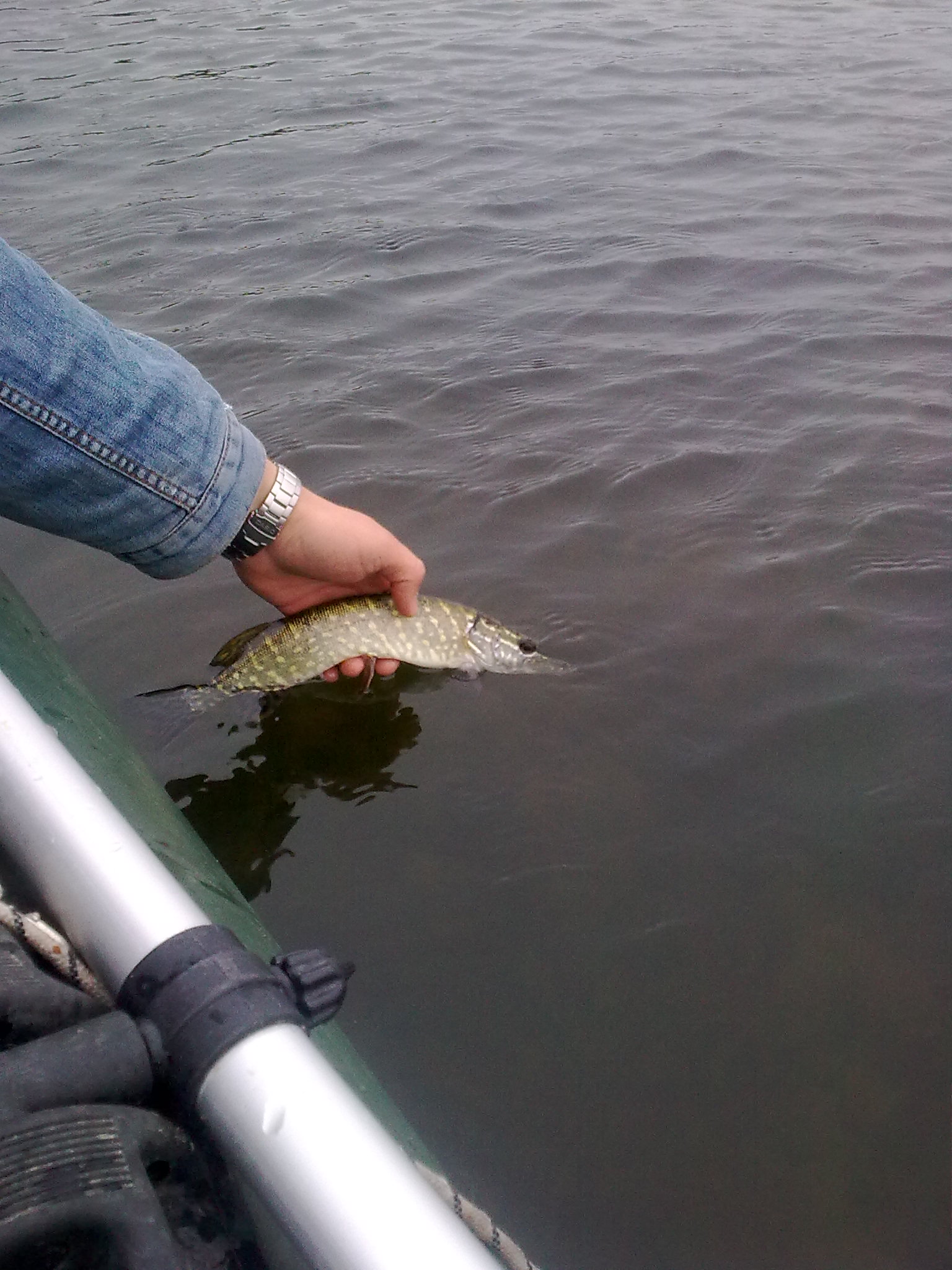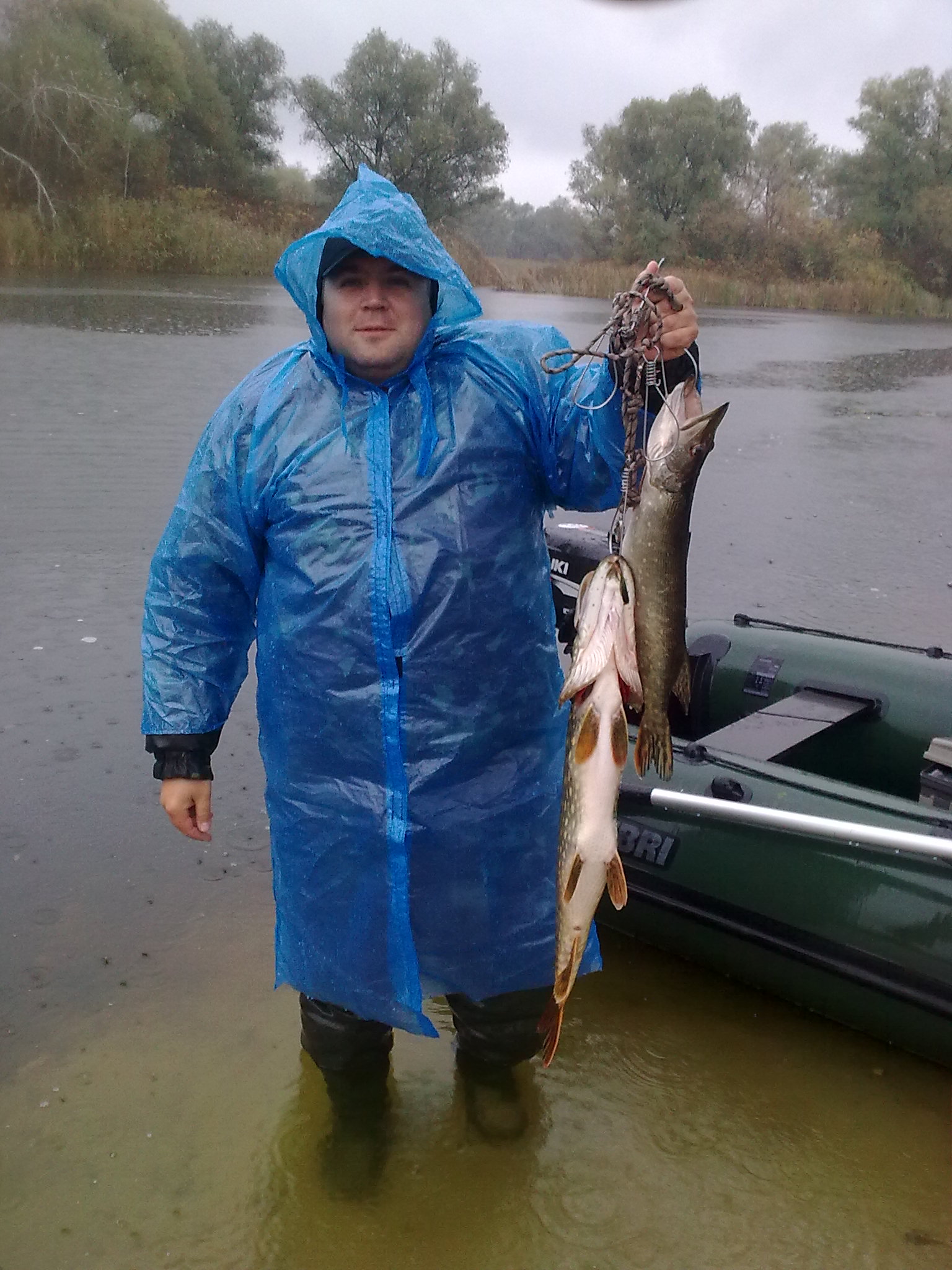 Рыбачил сегодня в Чикаловке.На воду спустились в 9 часов,ветра не было дождя пока тоже!На первой яме напарник Martun поймал щуку на 3.400(подробности он опишет сам)Через минут 10 и я отловился стандартной щучкой.Плавали ловили пока не пустился дождь(хорошо что взяли дождевики!К стати наблюдали интересную картину во время дождя, плывет лодка надувная а на ней палатка стоит как на зимнюю рыбалку и в окошко сбоку мужик смотрит куда плывет.Выглядело интересно!