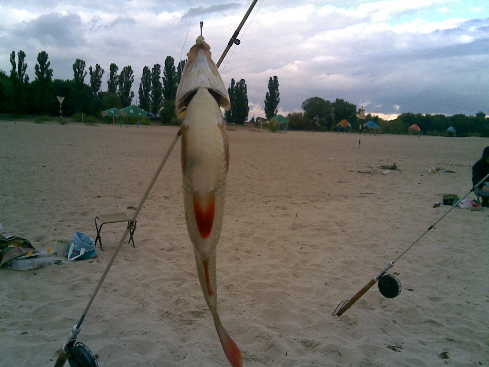 Вчера от нечего делать, после обеда решил подышать свежим воздухом, попутно помакать червей в Днепр. С 13.00 и до 17.30 ниодной поклевки, силиный ветер, погода на дождь, по берегу у всех почти также. Потом около 17.00 прошел 10 минутный ливень с градом, после дождя стало очень тихо, вышло солнышко и буквально через 5 минут первая поклевка. Естественно заветный карасик. За полтора часа, выловил десяток гарных карасей от 300 до 500гр. Рыбачил прямо на городском пляжу.