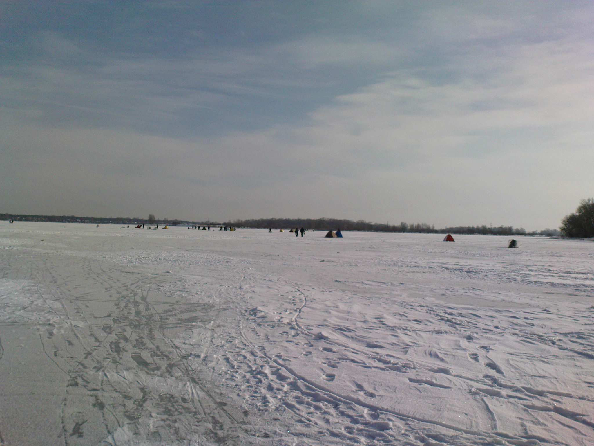 А вот такая обстановочка сегодня у нас на 11-00, где в хорошие "клёвые" дни всегда многолюдно. На лёд не заходил, что бы зря ноги не бить, фоткал с берега, но по стоящим, бродящим и уныло сидящим в ожидании предполагаемой :пардон:поклёвки рыбакам и так всё понятно- картина сама за всё говорит, да ещё встретил пару мужиков, которые со льда возвращались ни счем:(. Одна утеха - зима, карсиво!!!:ng_z_2: Самый раз на шашлычёк!!:tost:
