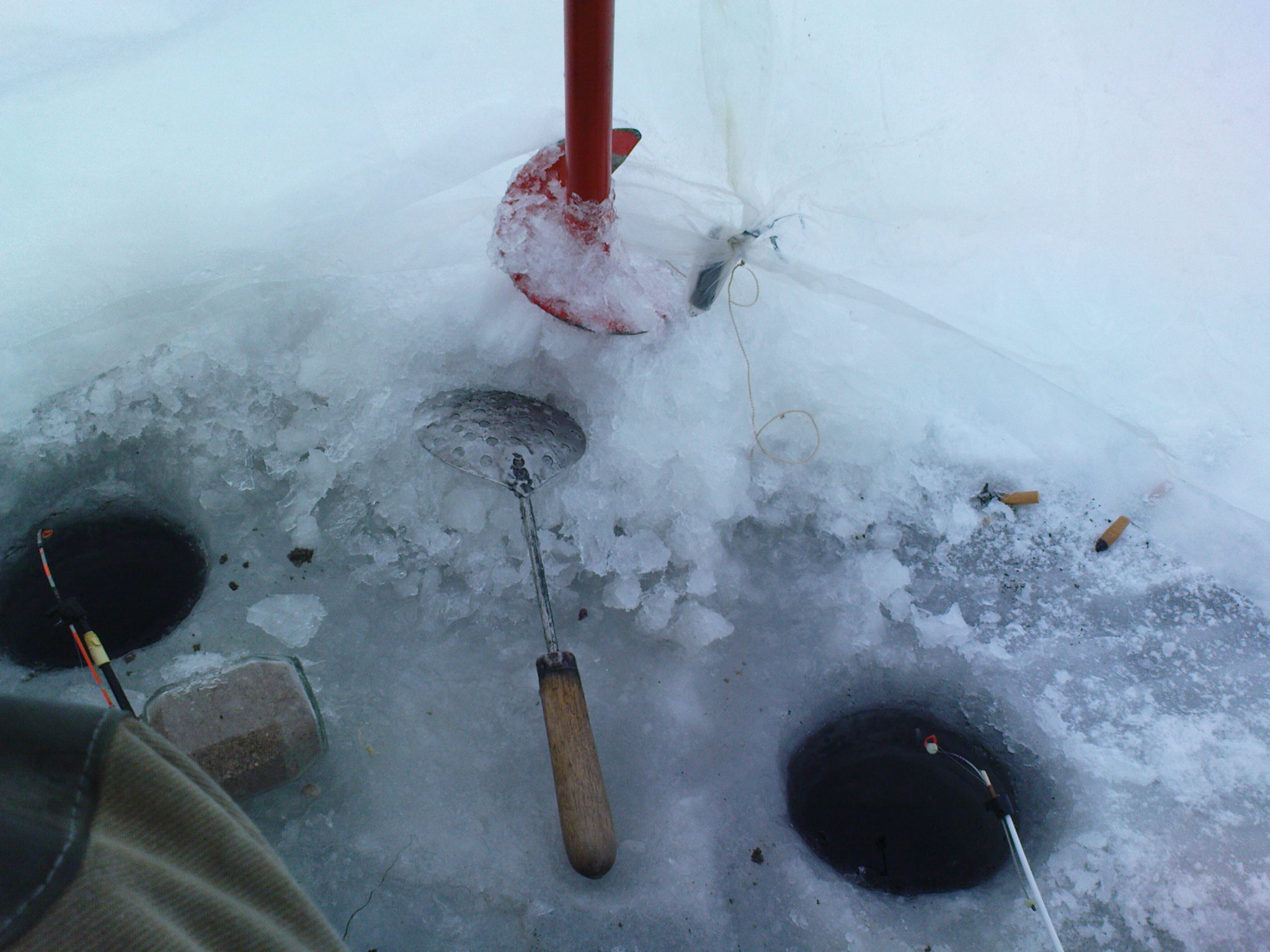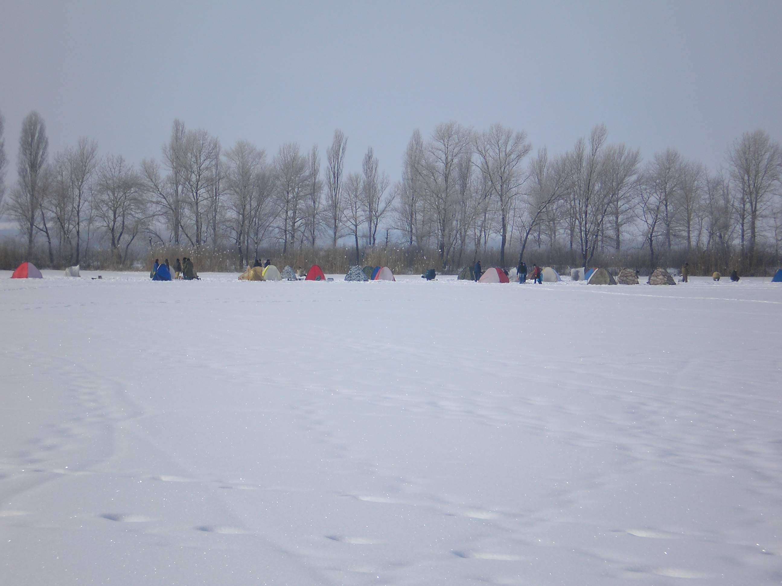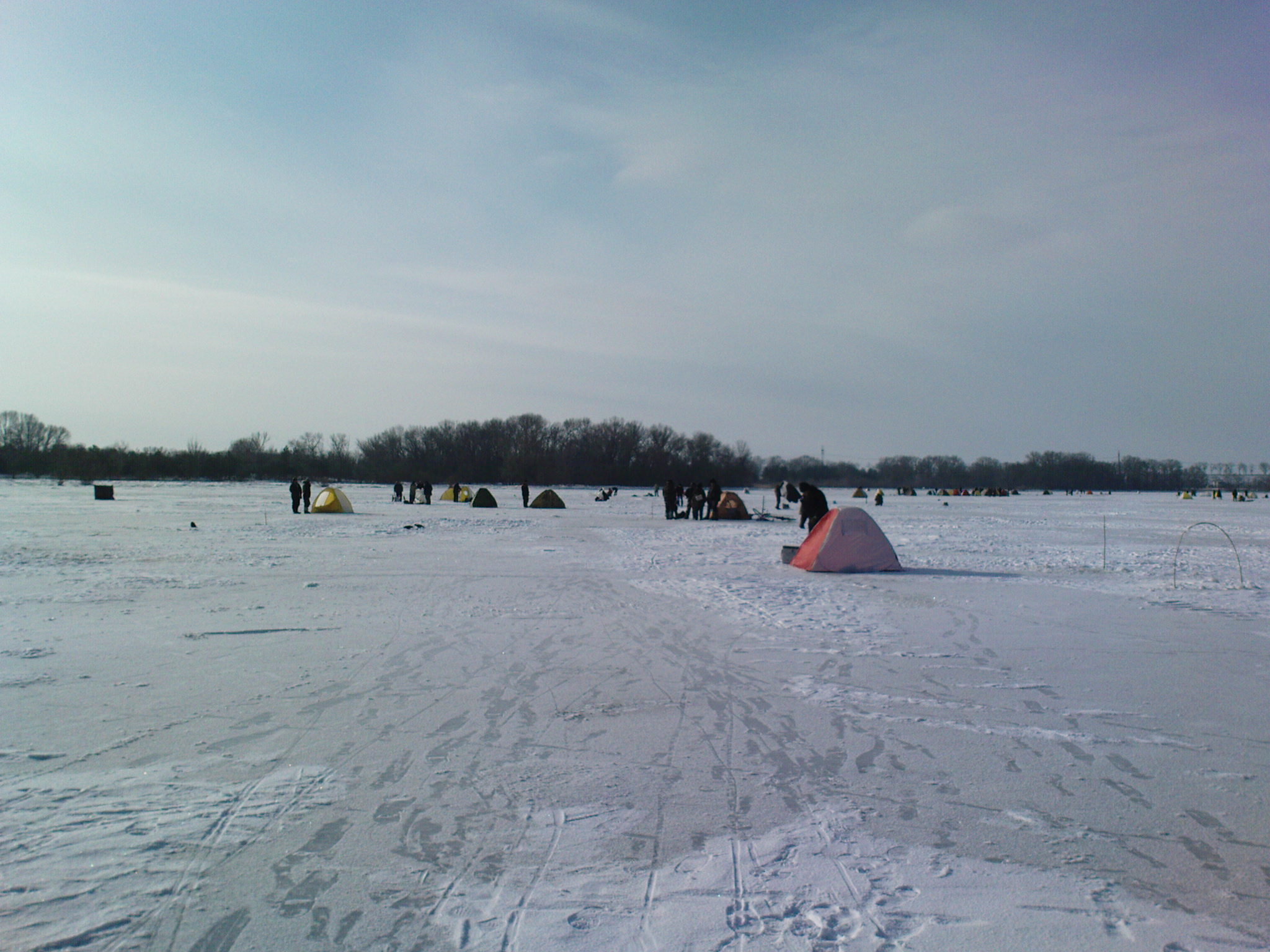 Так вот,прибыли они часам к 9 утра,погода "песня" 17 мороза,ветра нет,залезли в палатки и начали рыбохоту.Особо показателей не было,проклевывались плотвички по 100-150гр.Ну это почти ничего...Завели разговоры с постоянными,можно сказать с местными рыбаками и что-же?Вчера и позавчера ловилась очень даже красивая рыбка,попадались экземпляры 700-800гр.!!!А это в наше то время,дело стоит свеч!!!Но сегодня эти "свечи"прогорели" в холостую,поймали по несколько штук плотвин,вот и все.Хотя места там раньше были знатные,сам рыбачил там и очень неплохо.Почему такой подробный отчет,да потому,что с кумом созванивались через каждый час,всю инфо знаю лучше него даже...Просил расказать ,хоть рыбалка не удалась,но инфо, хоть какая но пусть другие узнают что,где и почем..